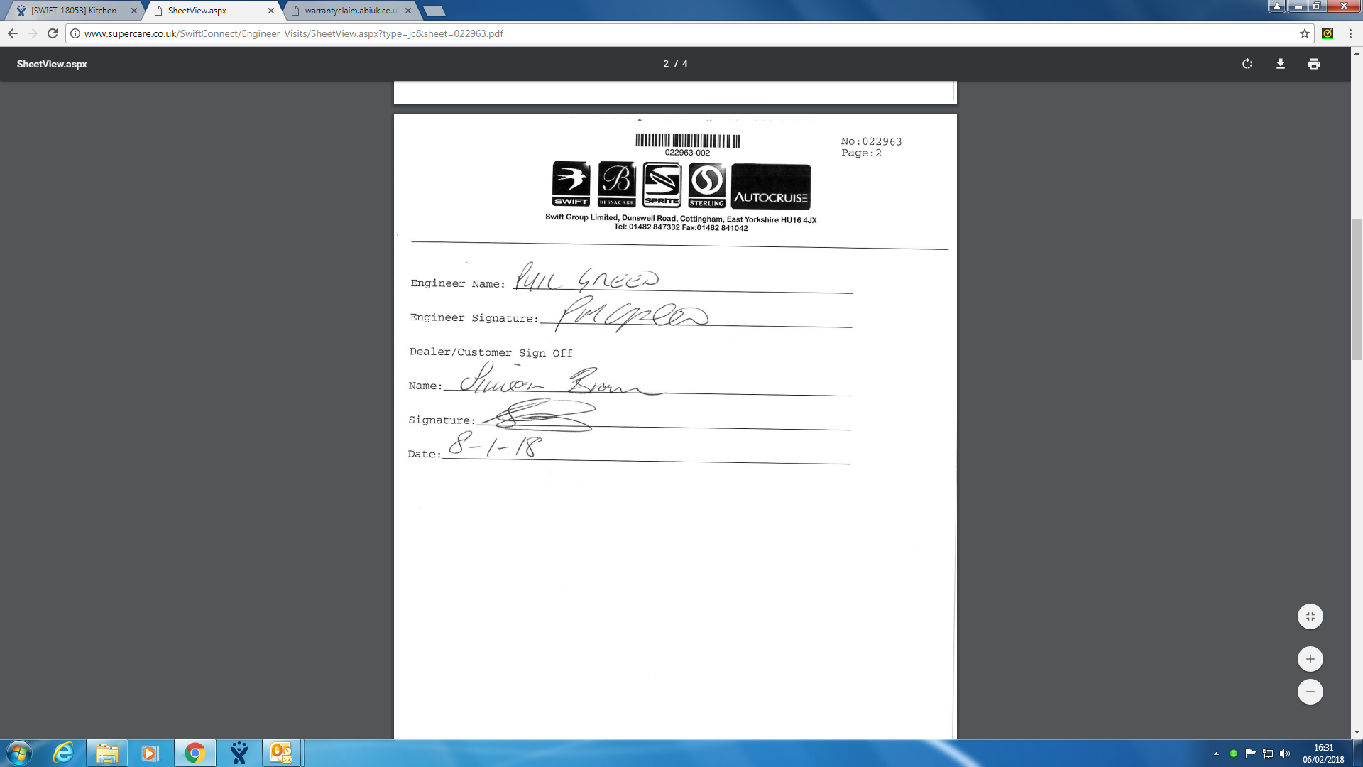 Swift have acknowledged this claim and will be arranging for an engineer to attend to the issue found.