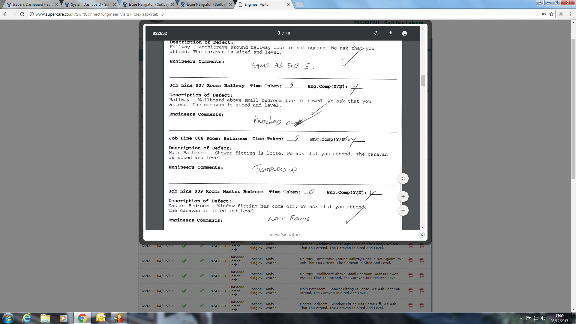 This is 1 of 29 issues that were reported by the owner to Leanne at the park see file attached. I have created the claim and submitted it through to Swift see screen shot attached. Park updated via email see screen shot attached.