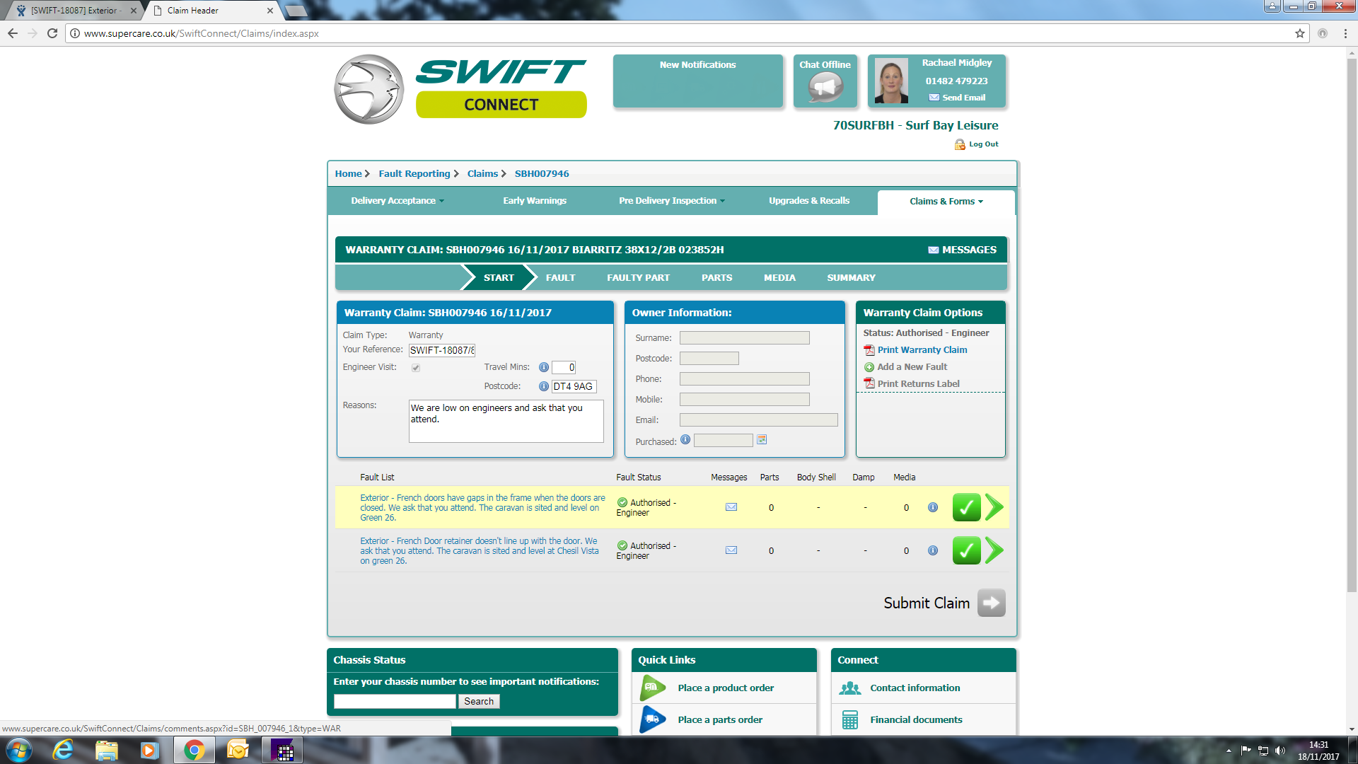| Attachment | Swift Claim .png [ 194089 ] |