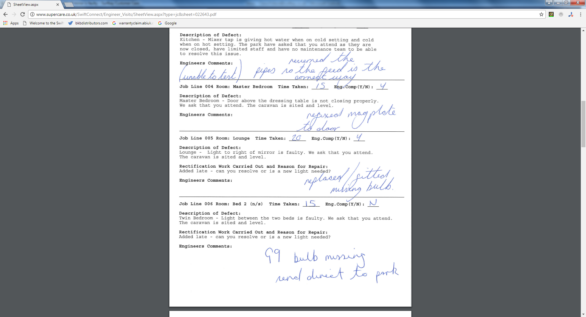 Swift have acknowledged this claim and will be arranging for an engineer to attend to the issue found.