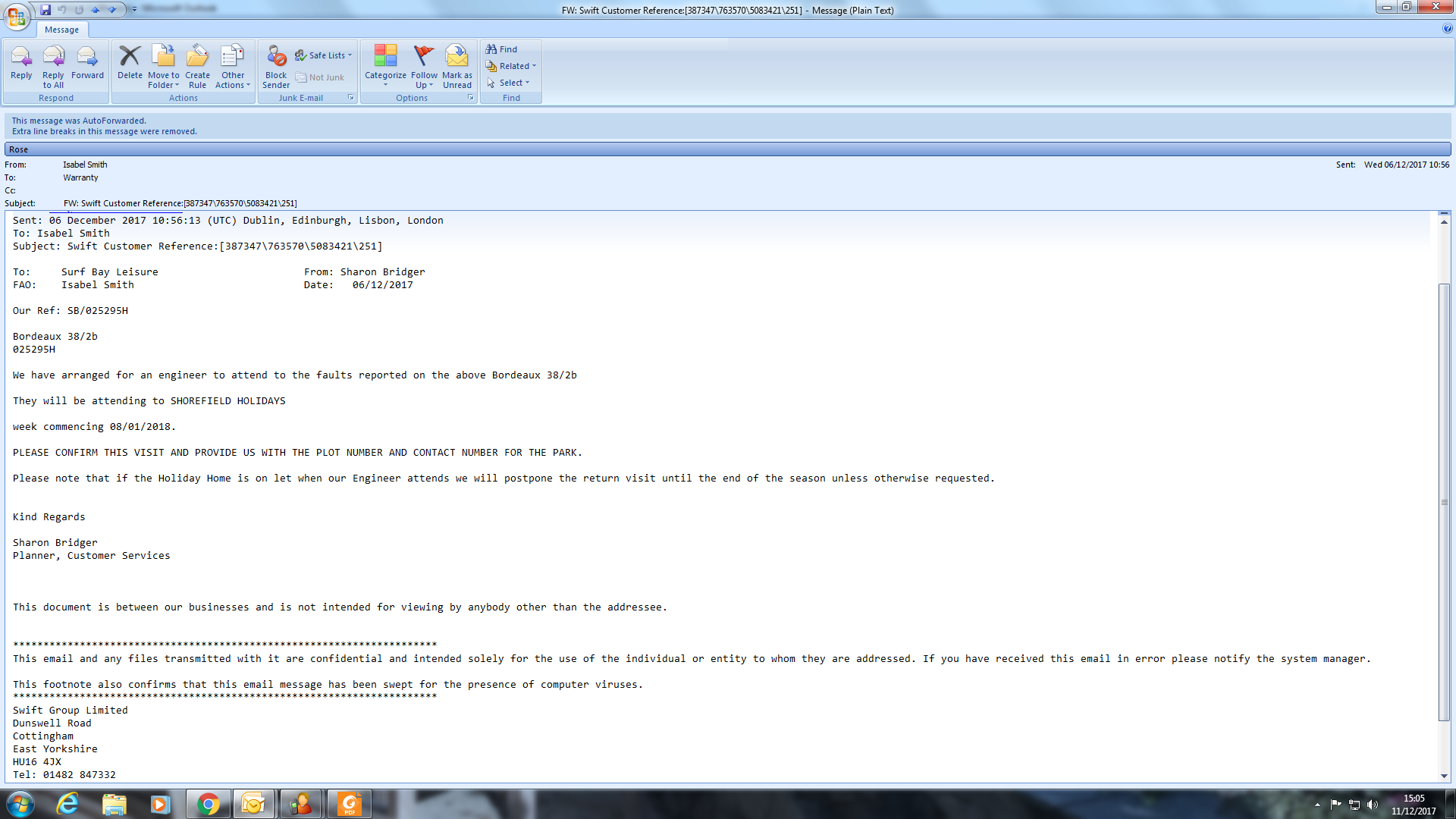 Further to our recent engineers visit I am pleased to confirm all work has now been completed.