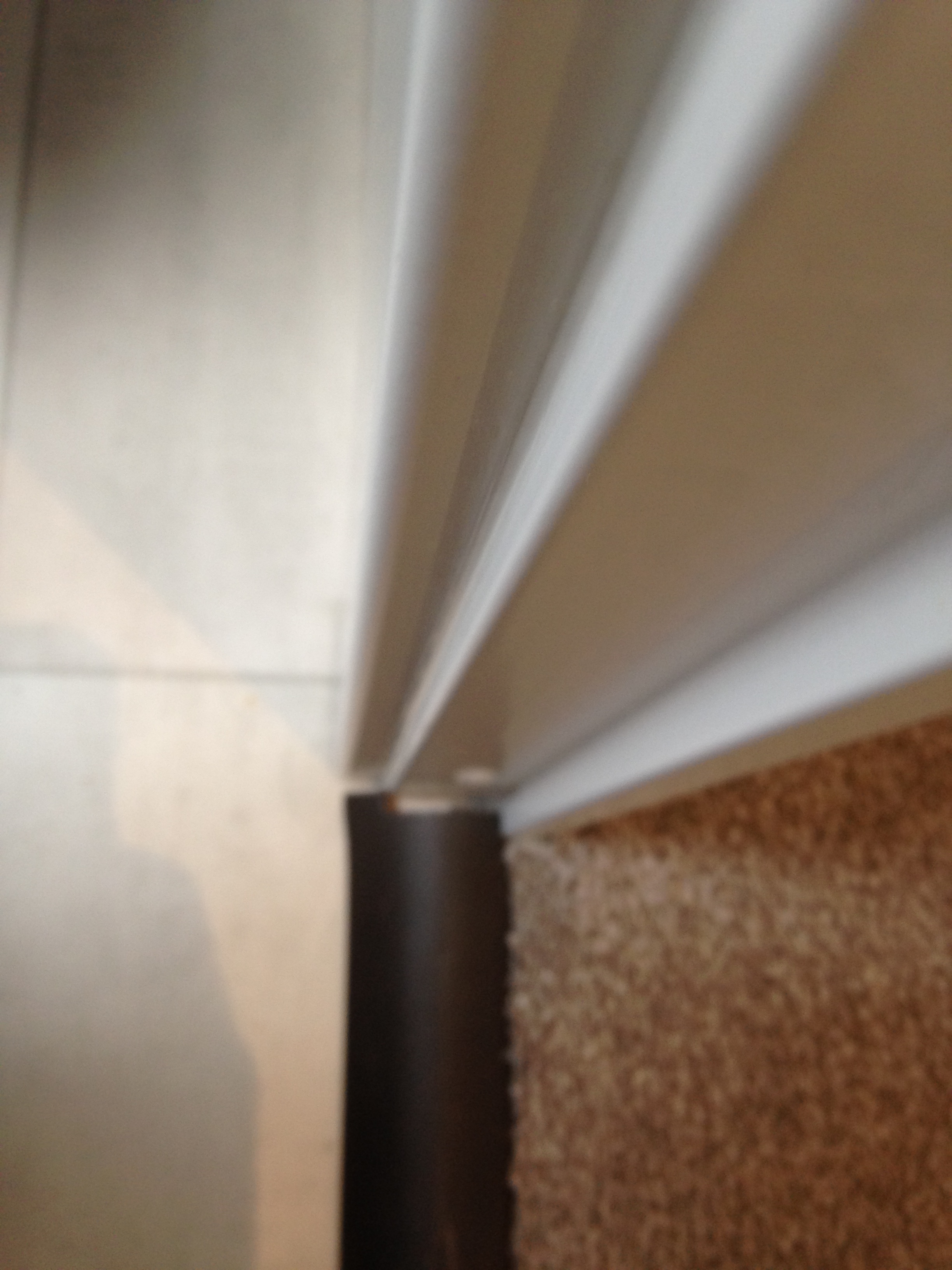 PDI - Main Bathroom - Threshold on carpet has been fitted too short.