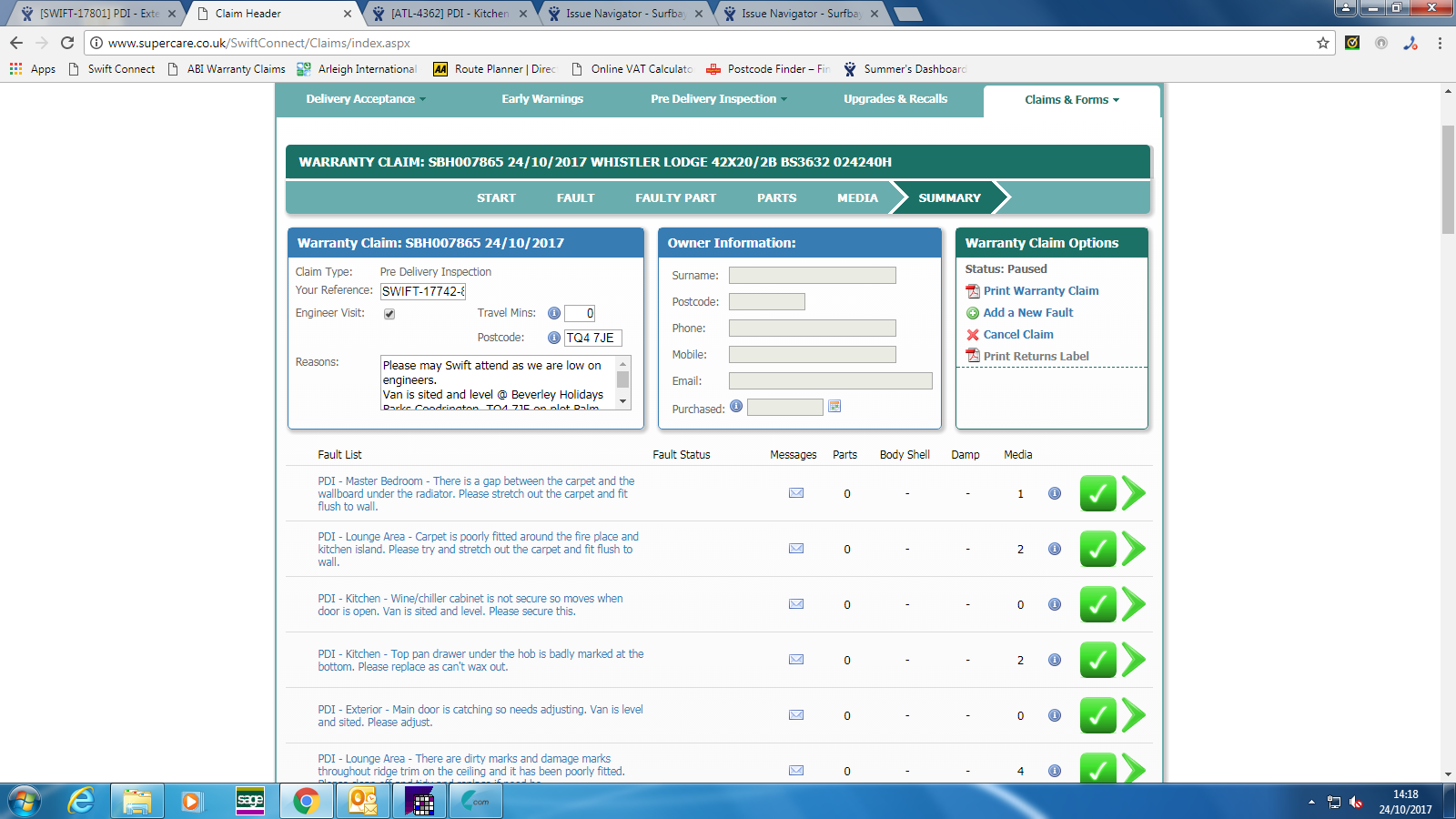 This is 1 of 59 issues found on the PDI. I have made a claim and submitted through to Swift, see attached.