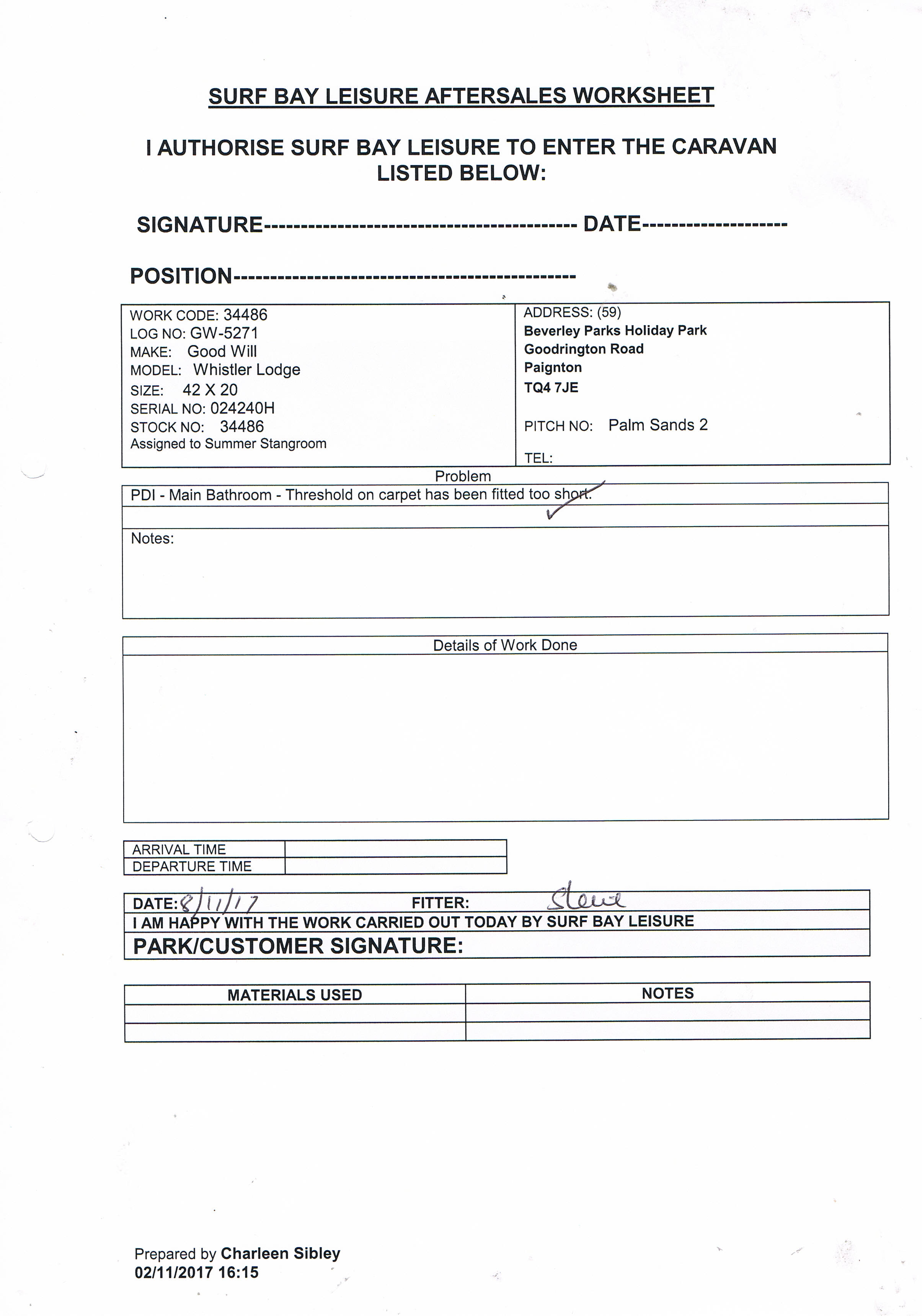 Charleen Sibley added a comment - This is an ex demo so I have no idea why these issues have been put through to Swift??? I have now changed to Good will and have scheduled Steve to attend next week 8/11/17. Worksheet issued.