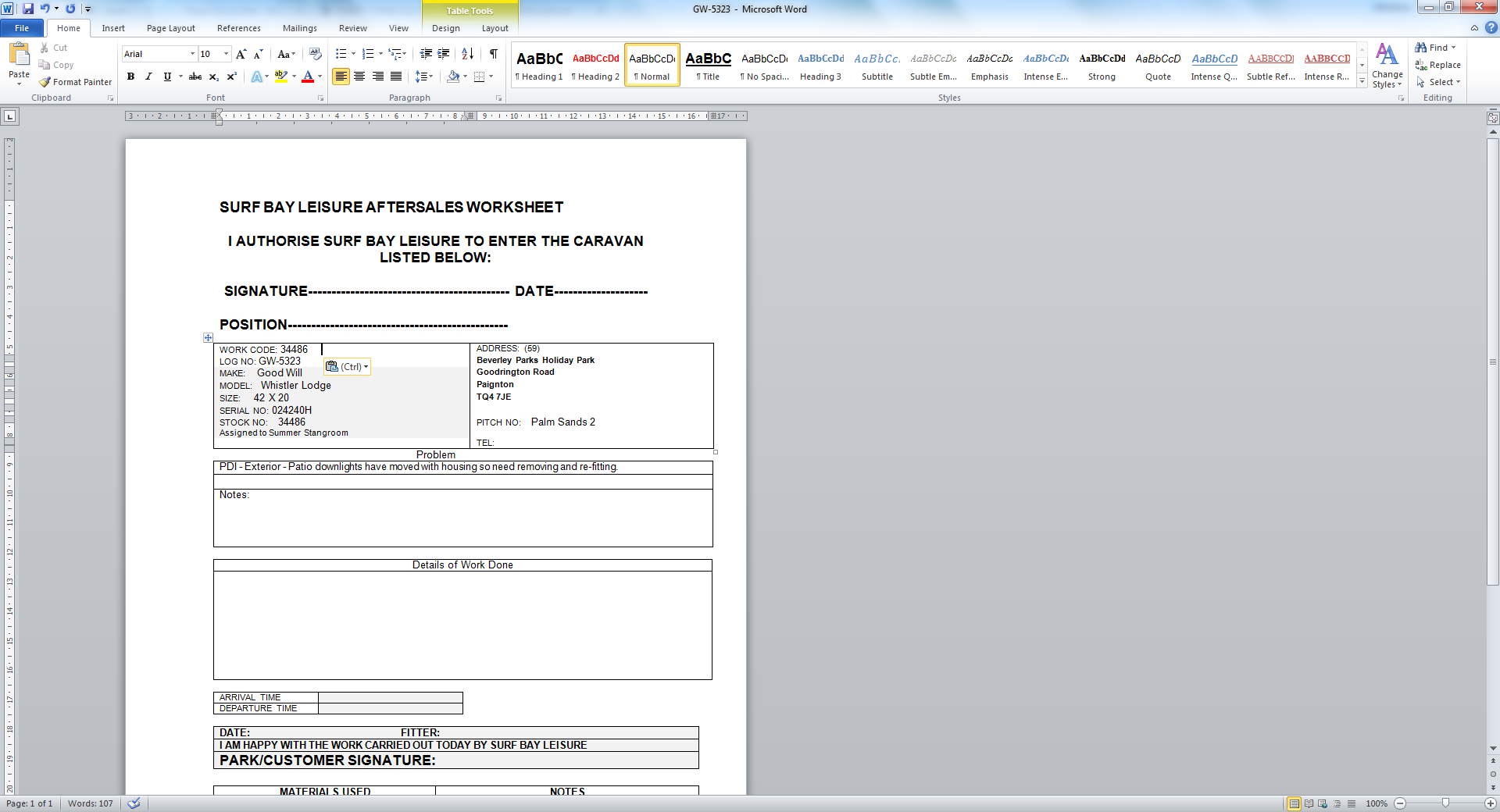 | Status | Parts Recieved [ 10003 ] | Worksheet Issued [ 10004 ] |