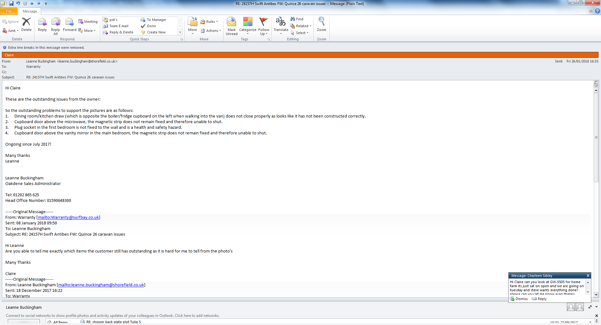 Berenice Law (Inactive) added a comment - Email came back from Leanne as on holiday and undeliverable to sales so I telephoned and spoke to Lynne and advised her verbally.
