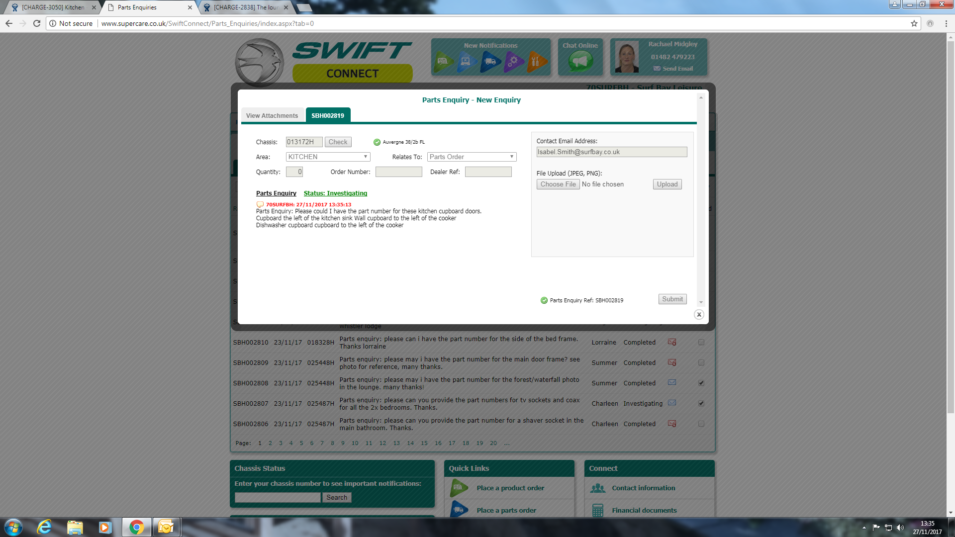 | Attachment | 21.12.17 Swift order for parts.png [ 197950 ] |