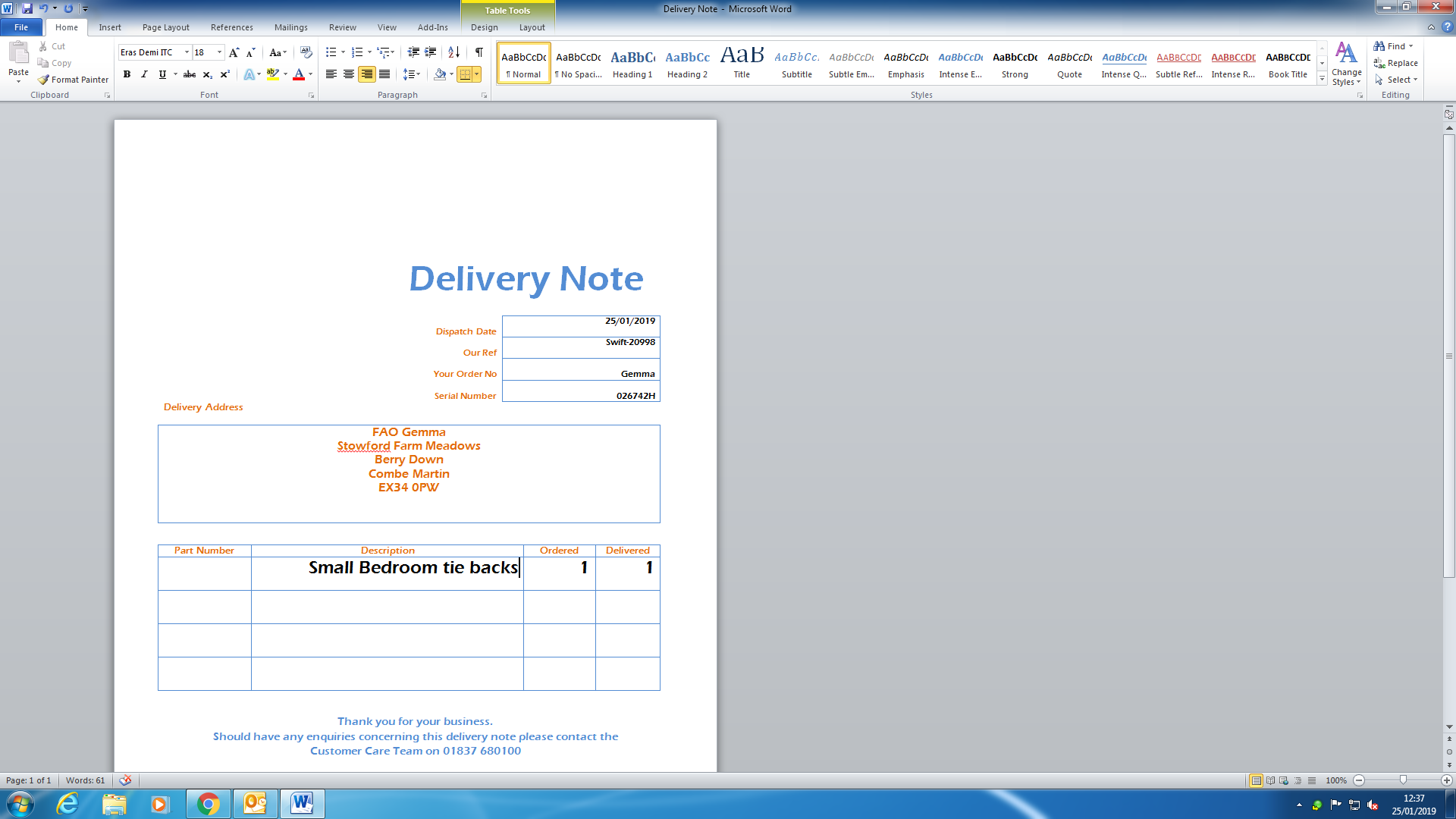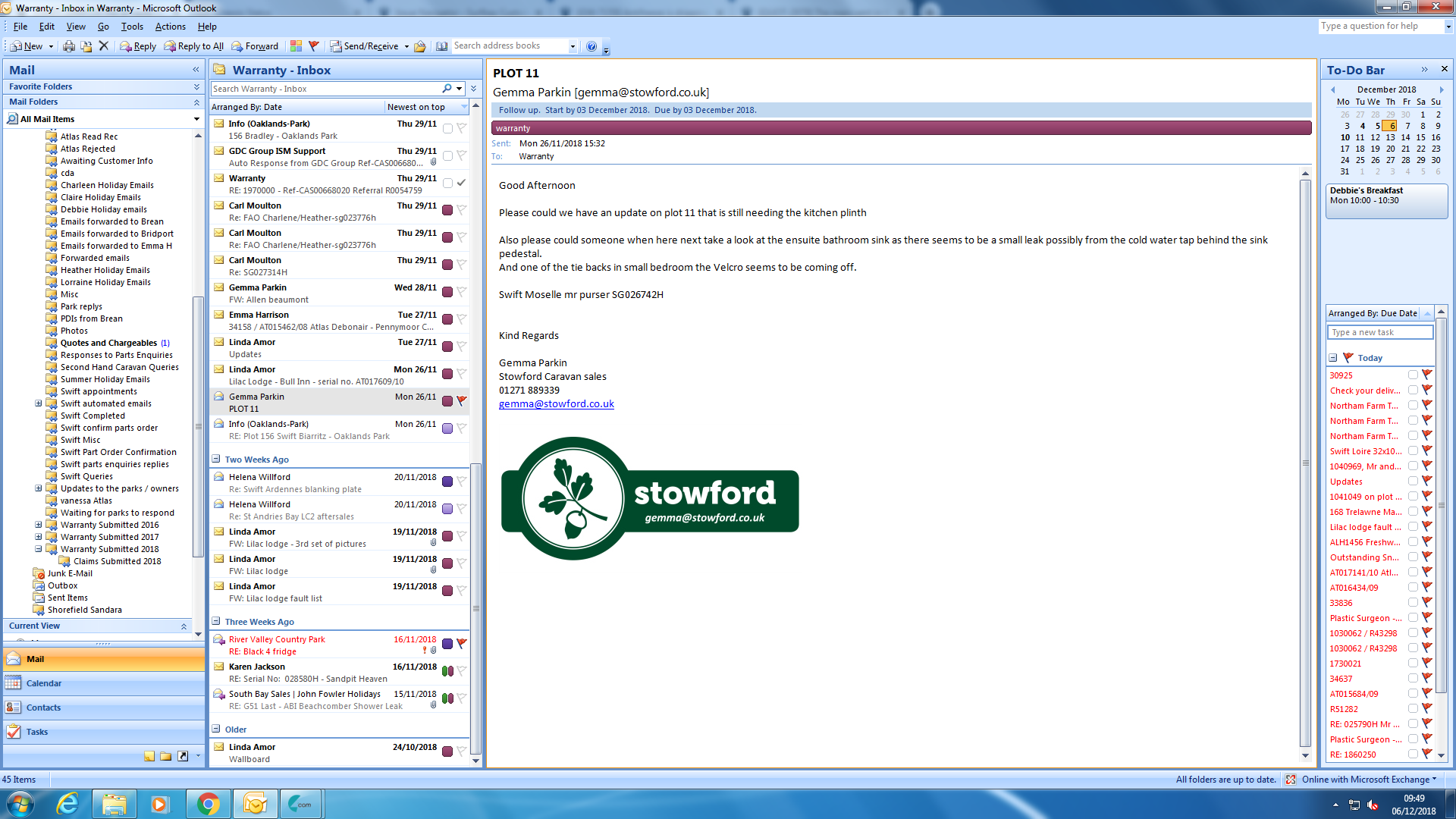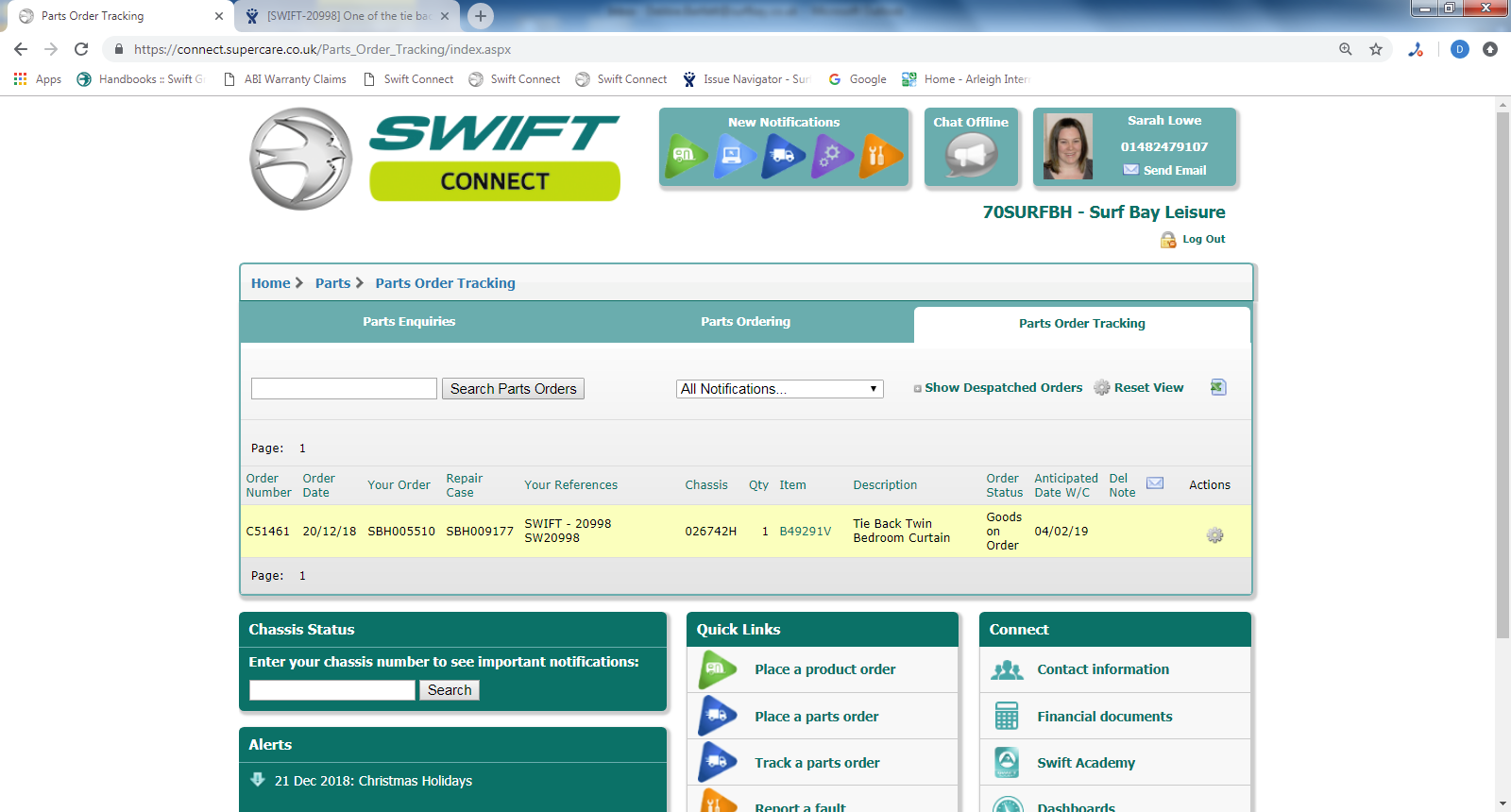 Park emailed to report. I have submitted to Swift and done a worksheet.
