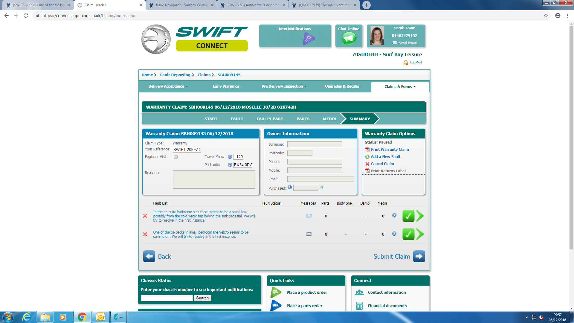 | Status | Engineer Scheduled [ 10000 ] | Parts on reorder [ 10009 ] |