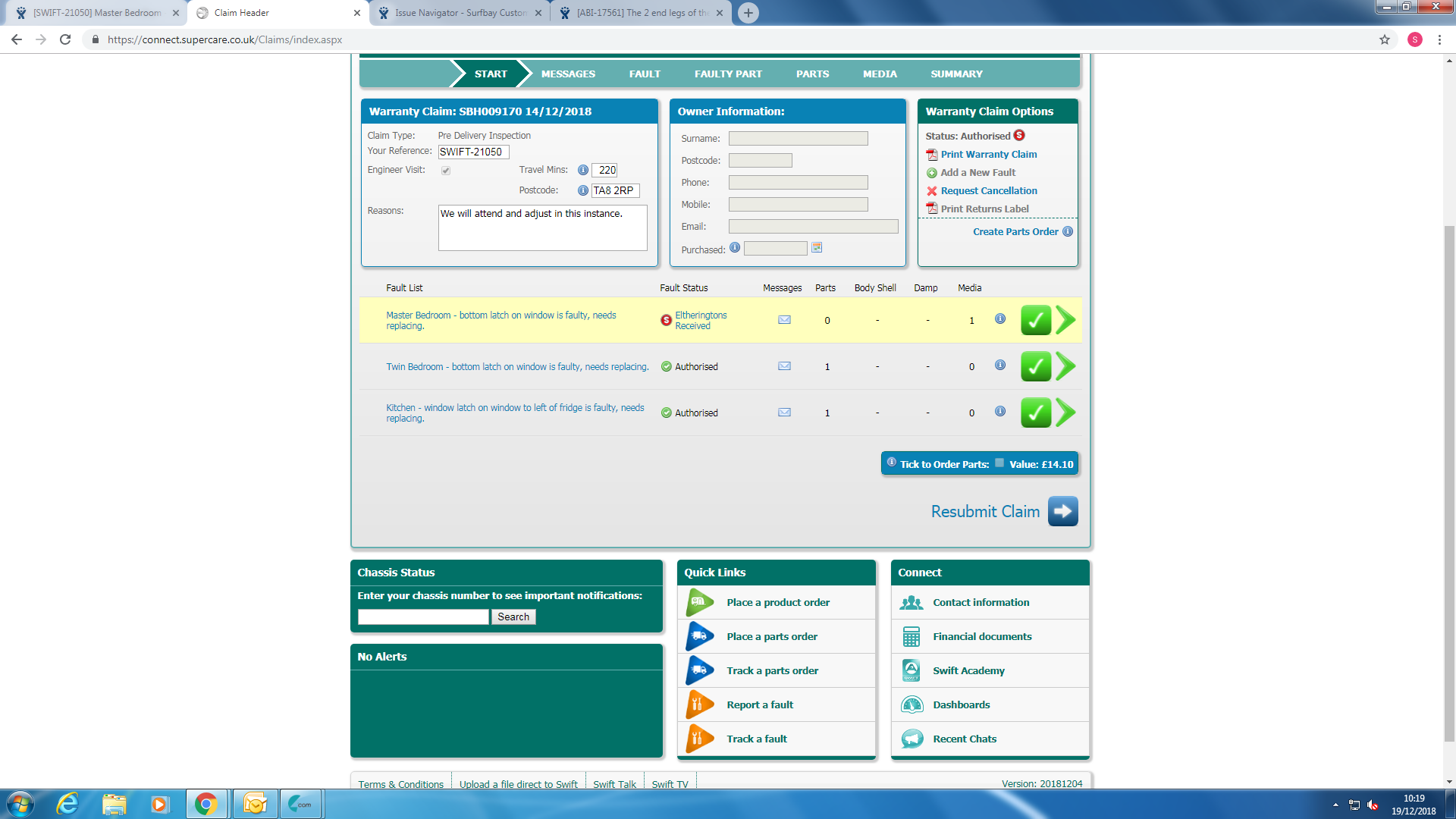 | Status | Parts Recieved [ 10003 ] | Worksheet Issued [ 10004 ] |