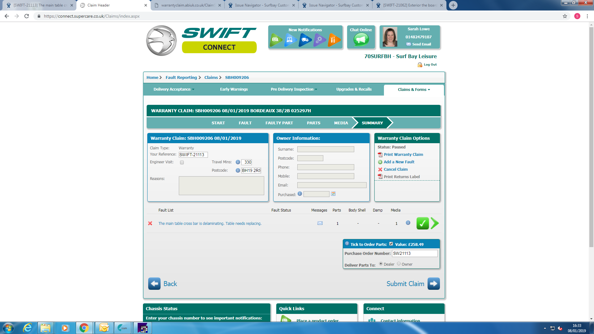 Summer Stangroom (Inactive) added a comment - Swift have auth and parts on order.
