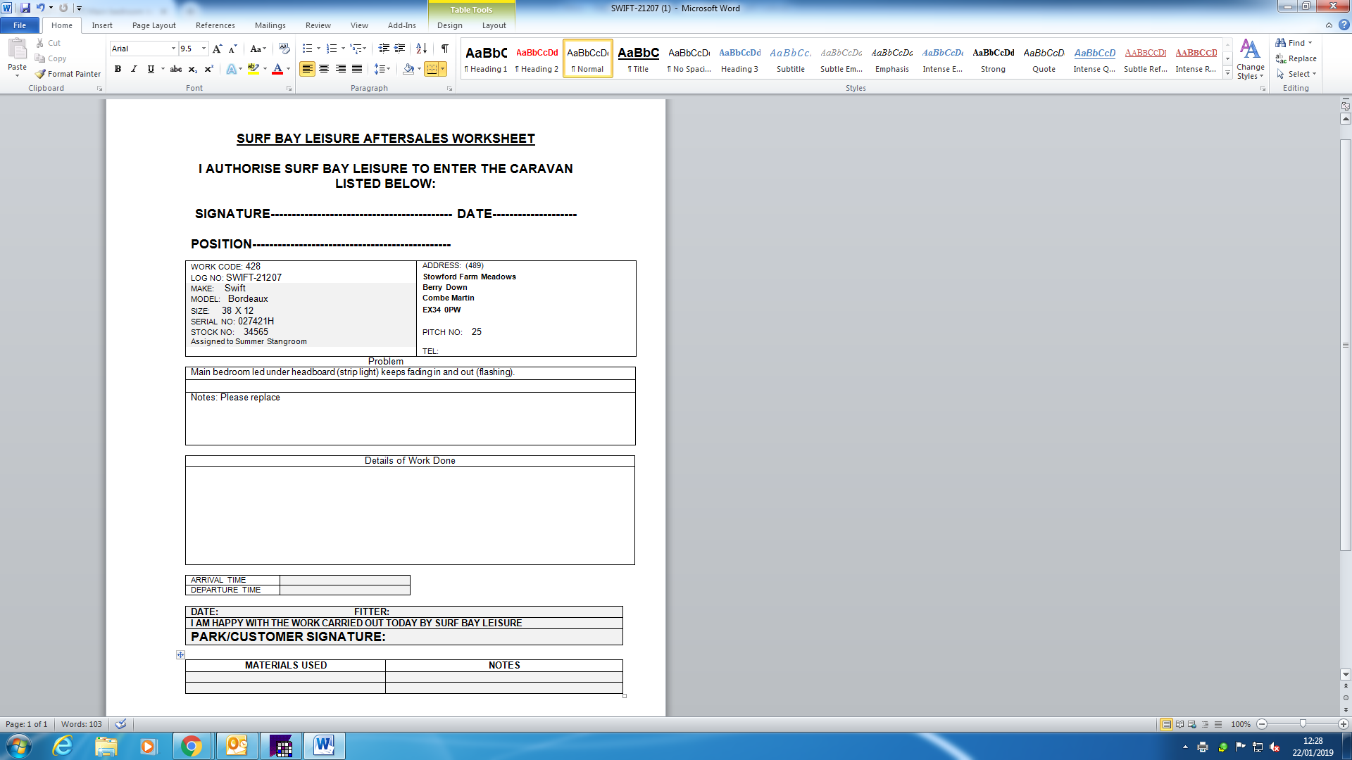 Park emailed to report. I have submitted to Swift and emailed the park back.