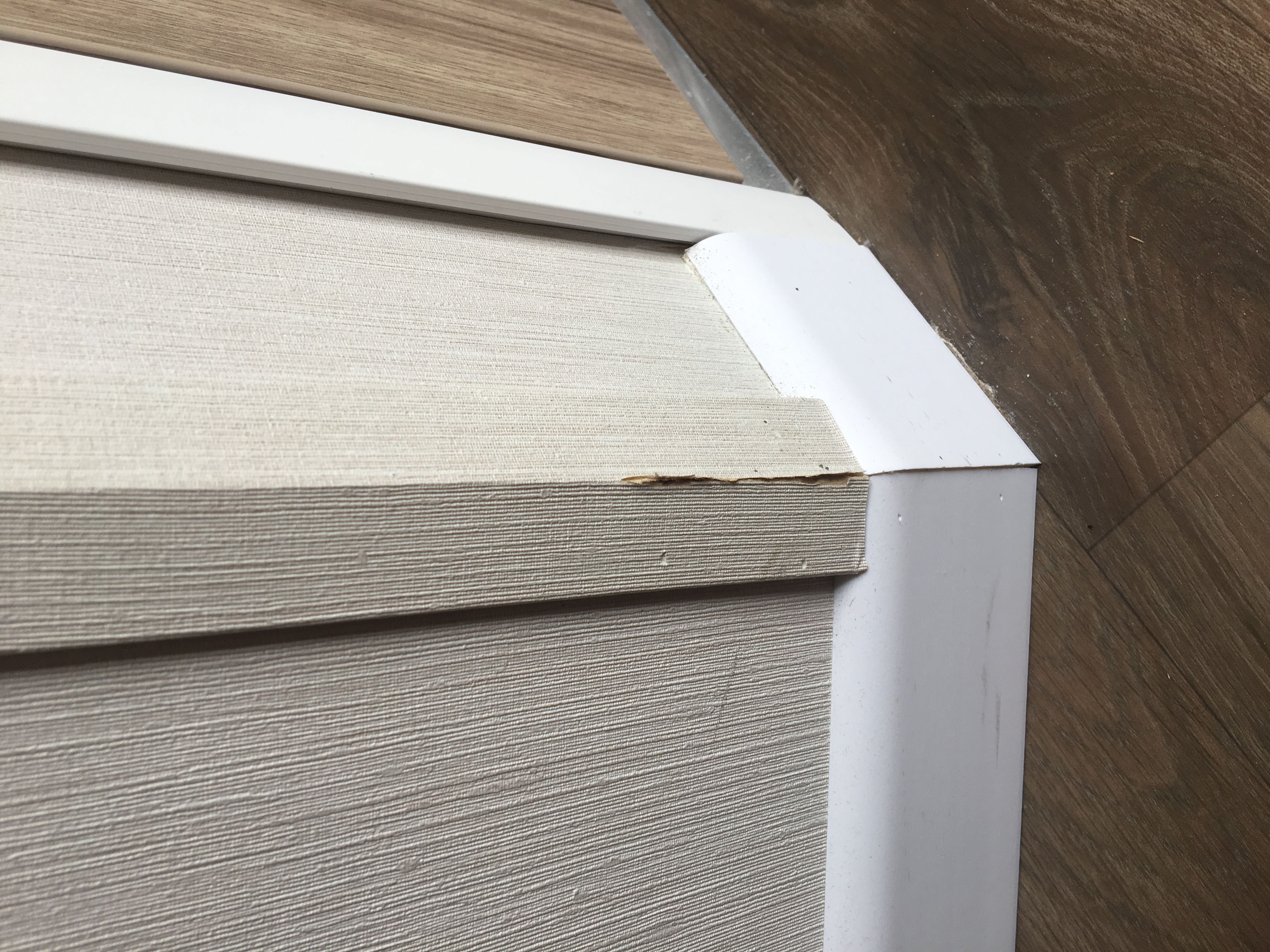 Corner trim in hallway is damaged, needs replacing.