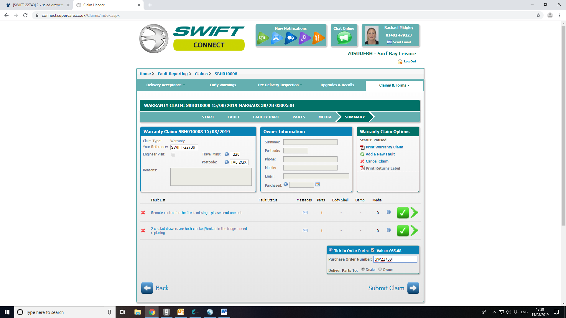 Park_Company:Sandy Glade Caravan Park - DO NOT SEND PARTS DIRECT TO SITE