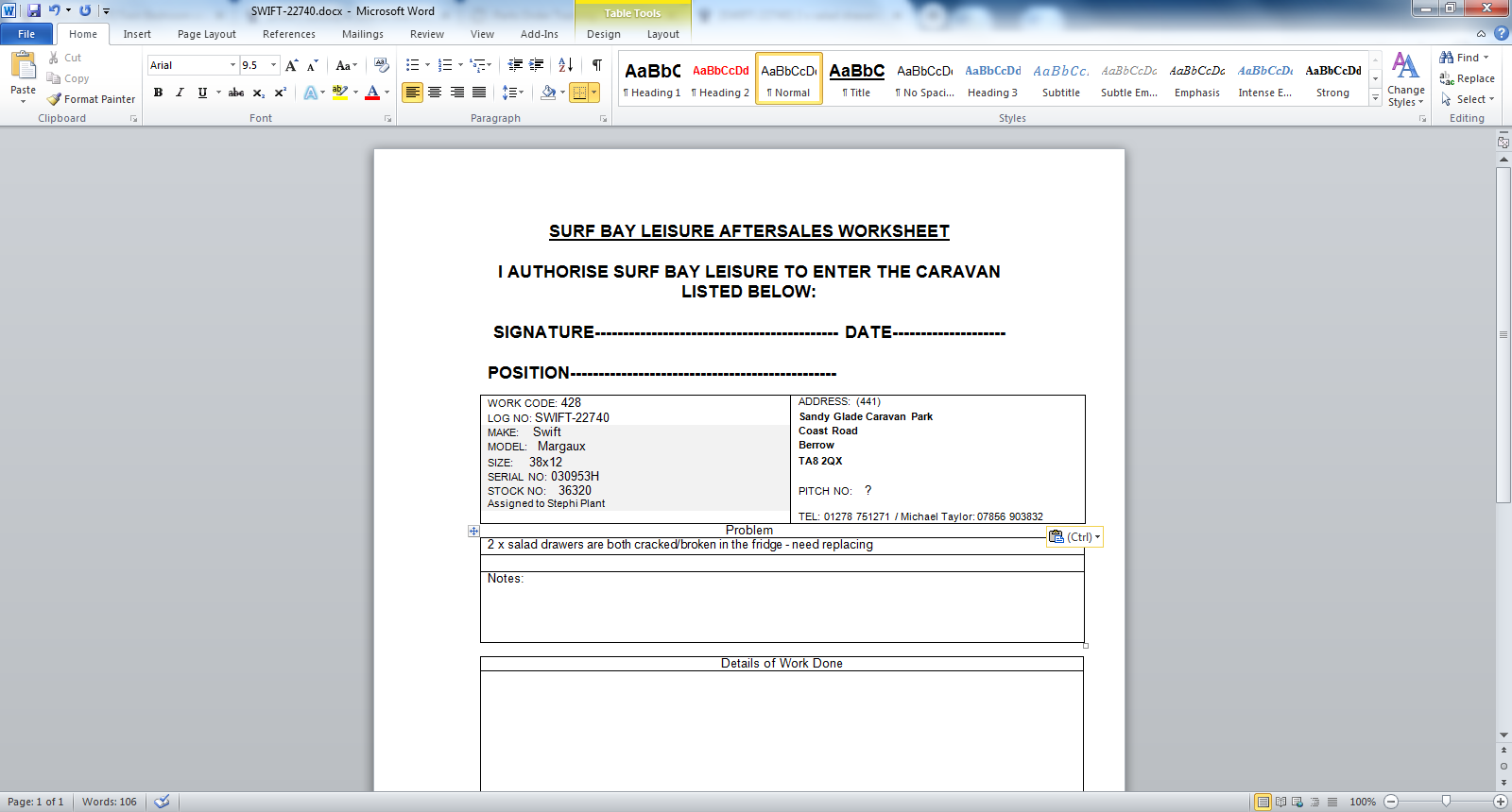 Park_Phone:01278 751271 / Michael Taylor: 07856 903832