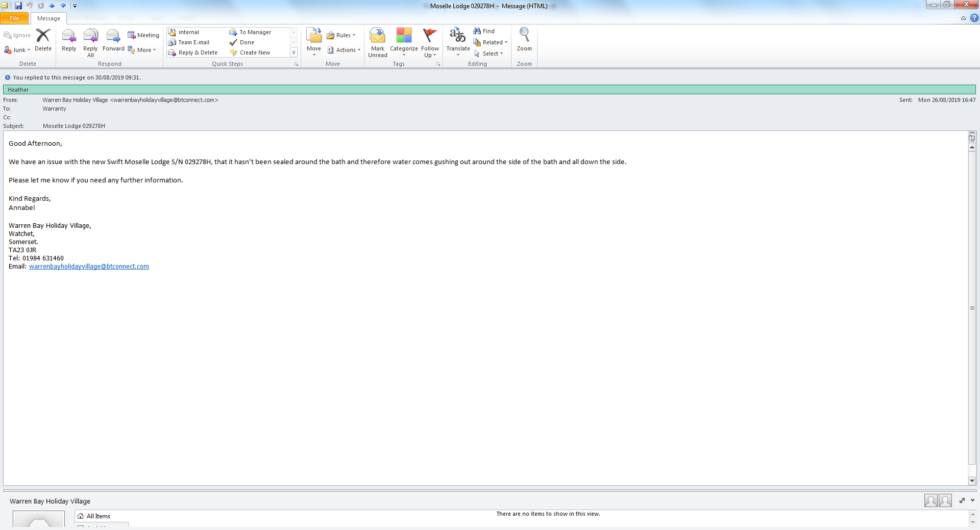Bath needs resealing/mastic needs refitting as bath is leaking.