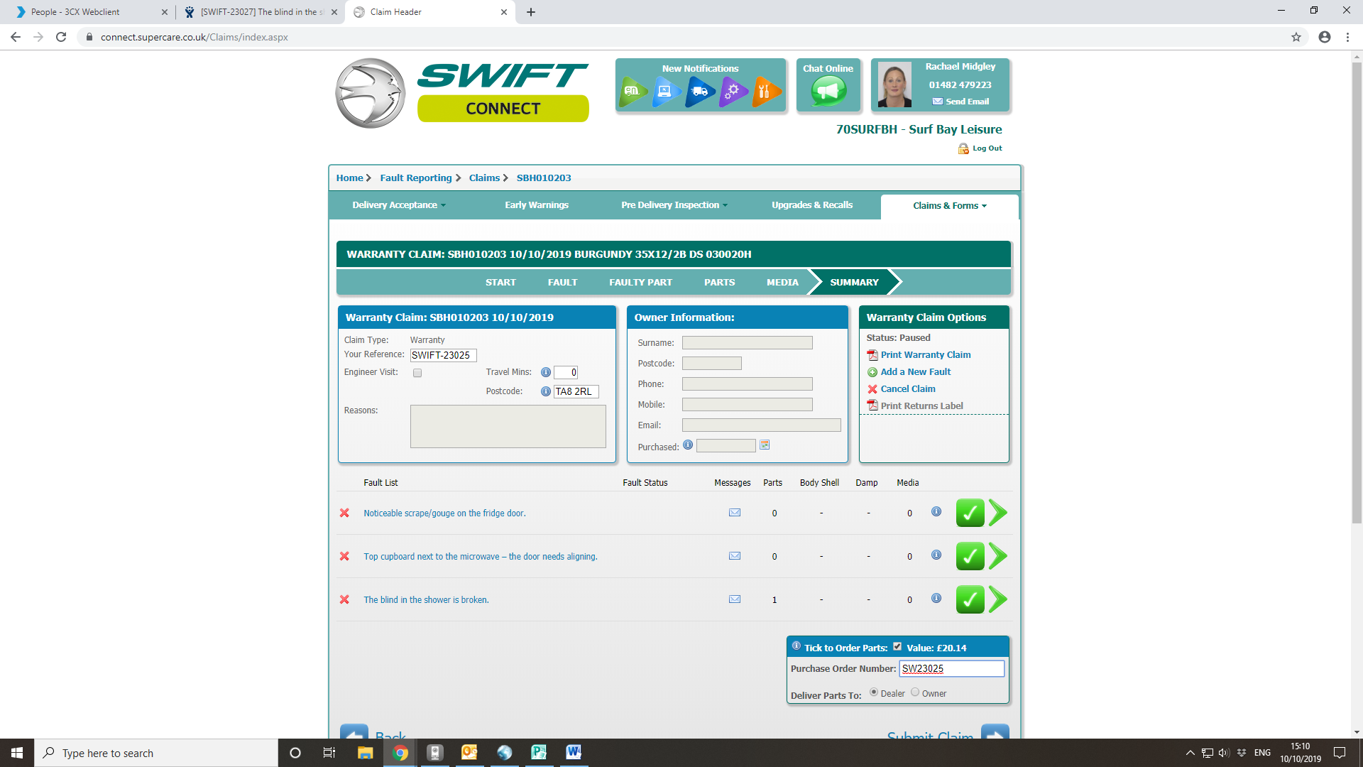 Heather Barbieri (Inactive) added a comment - Swift have authorised for our engineer to attend