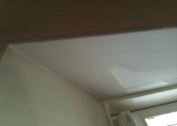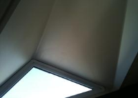 THE CEILING ABOVE THE TRIANGULAR WINDOW IS MARKED - WE SENT STEVE OUT TO CLEAN HOWEVER THE CUSTOMER IS NOT HAPPY WITH THE REPAIR.