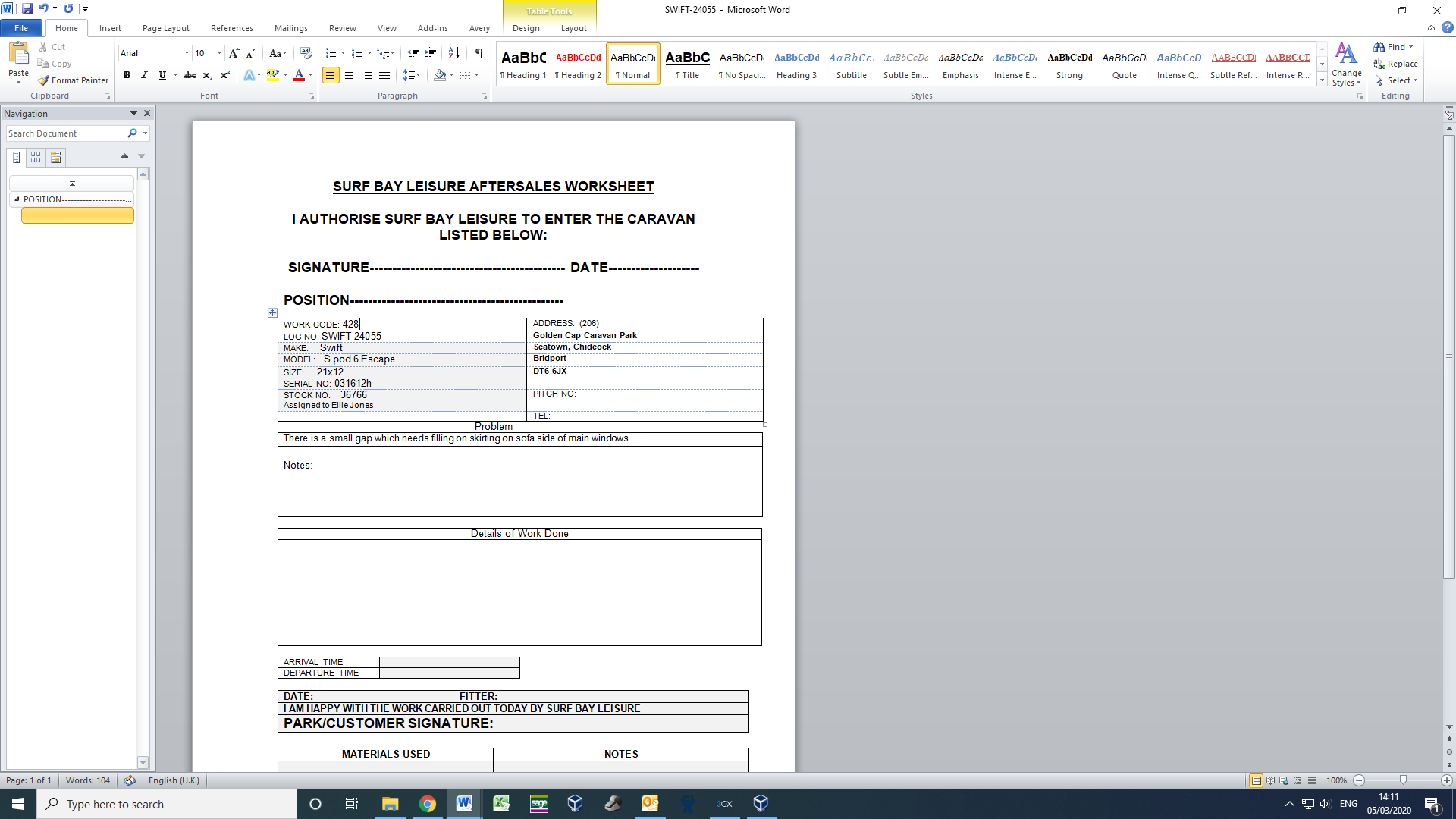 Michelle Brooks (Inactive) added a comment - Swift have authorised claim, worksheet issued.