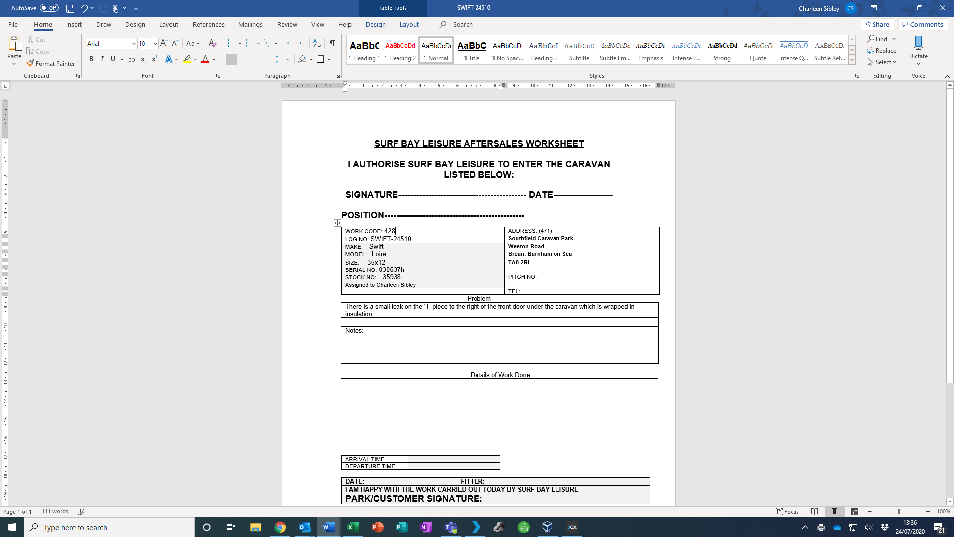 | Park_Address | Southfield Caravan Park |
