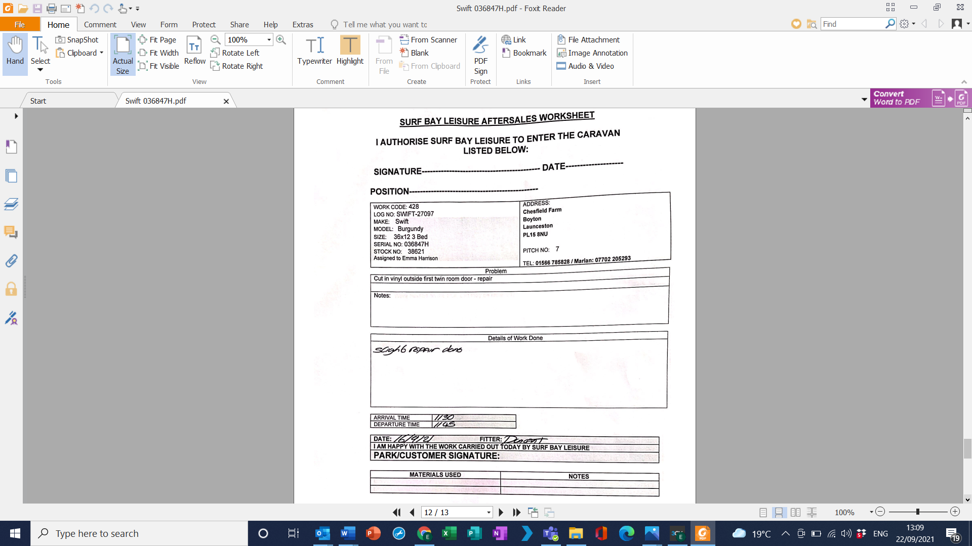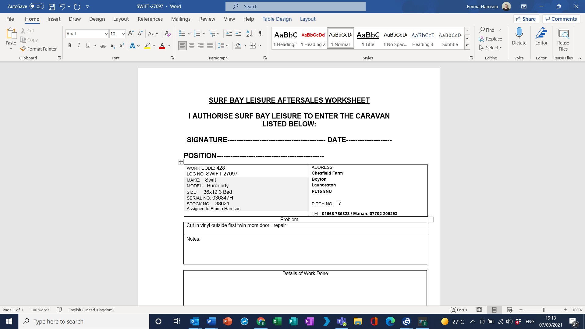 Park_Phone:01566 785828 / Marian: 07702 205293
