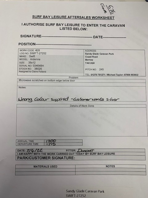 Claire Folland added a comment - swift have advised they only supply black microwaves, customer has silver one and will not accept anything else, will advise this is all we can get