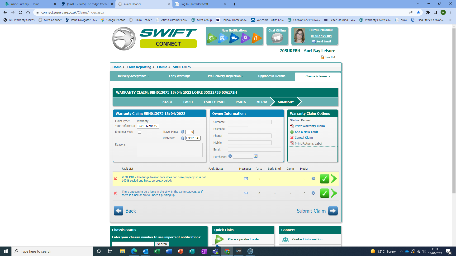 Work completed by Duncant, been adjusted. - 10/05/22.