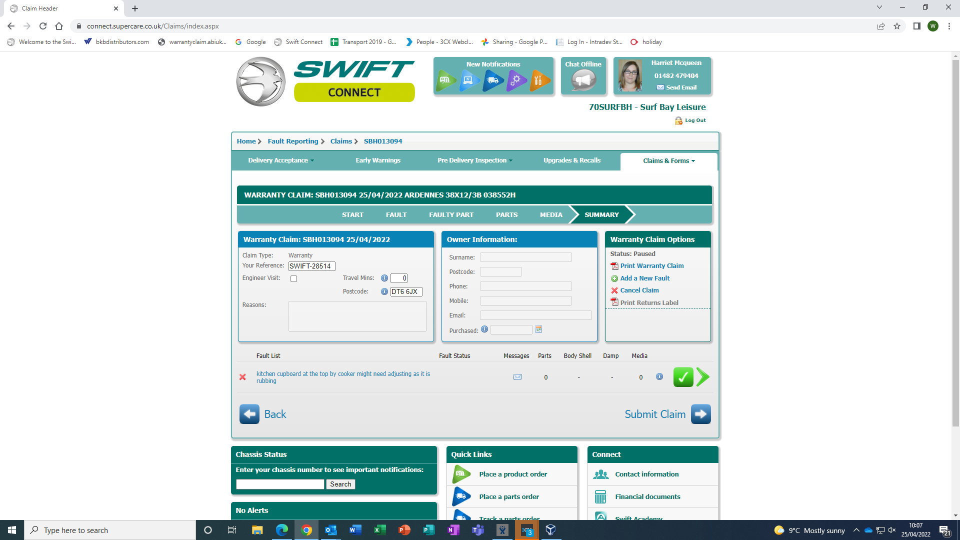 Claire Folland added a comment - received email from park, submitted into Swift
