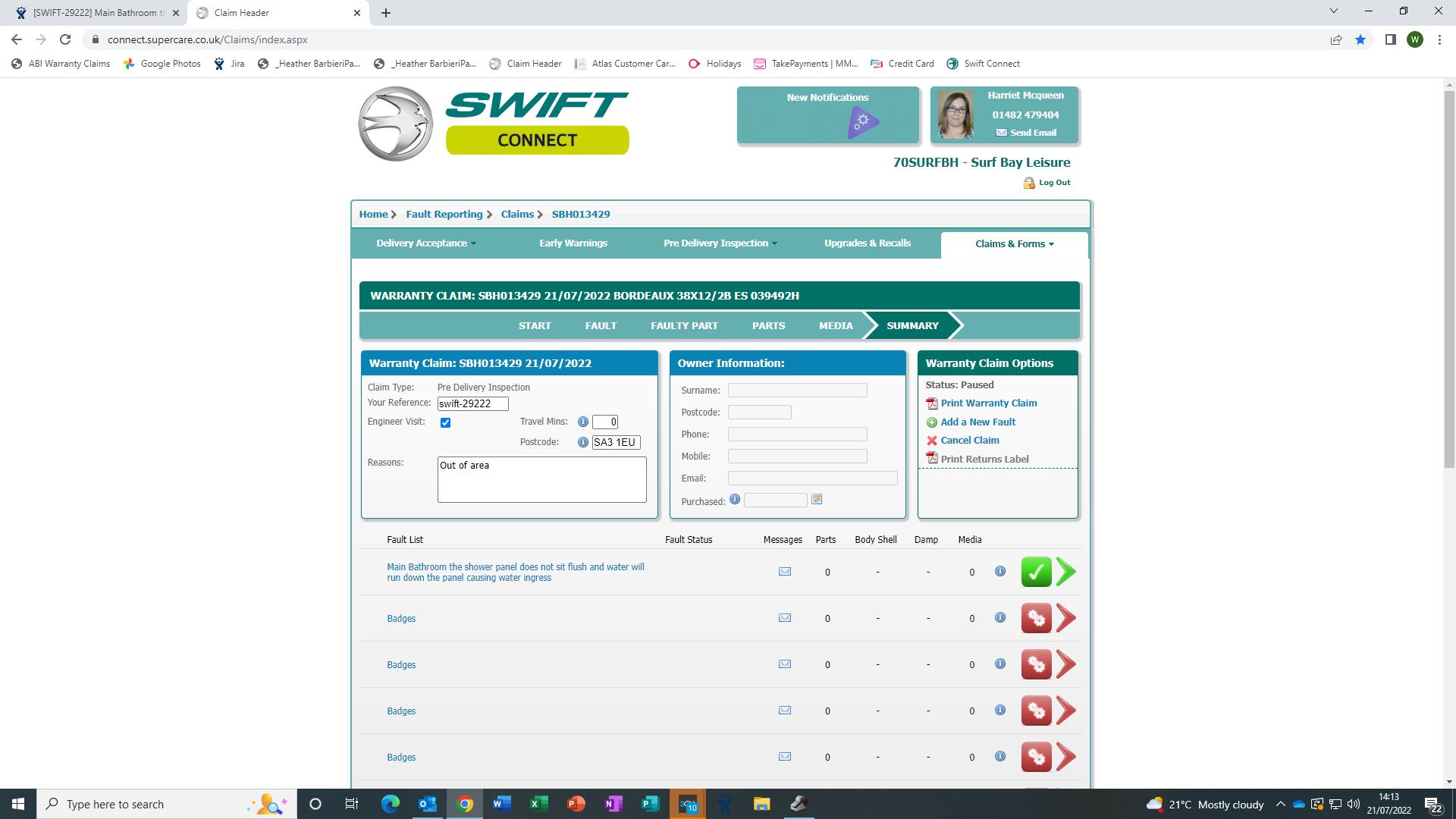 Heather Barbieri (Inactive) added a comment - Swift have authorised this claim and Swift engineer to attend