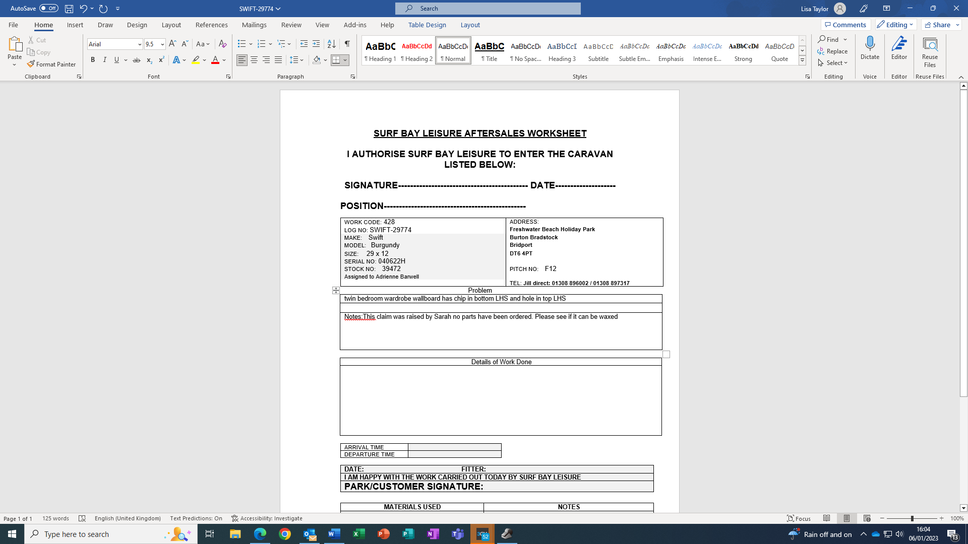 Lisa Taylor (Inactive) added a comment - Swift have authorised this claim worksheet issued