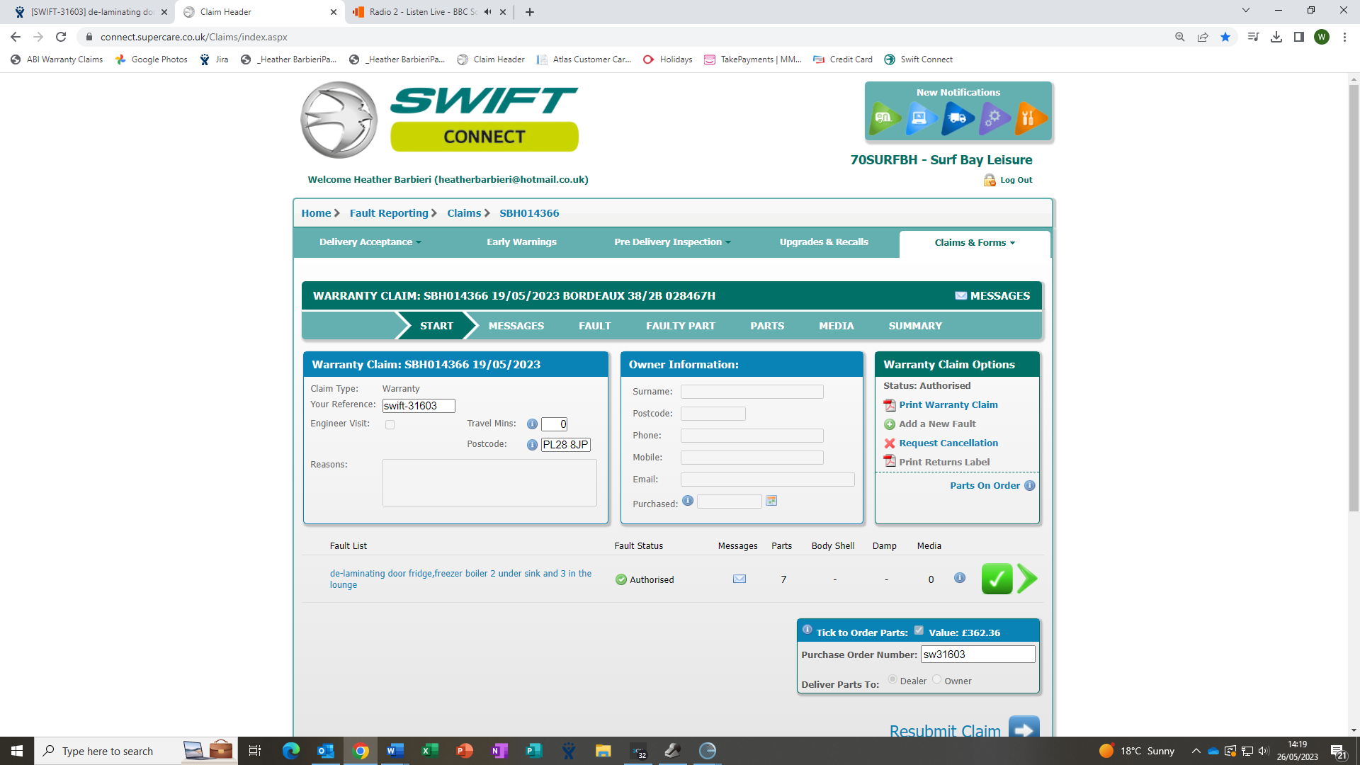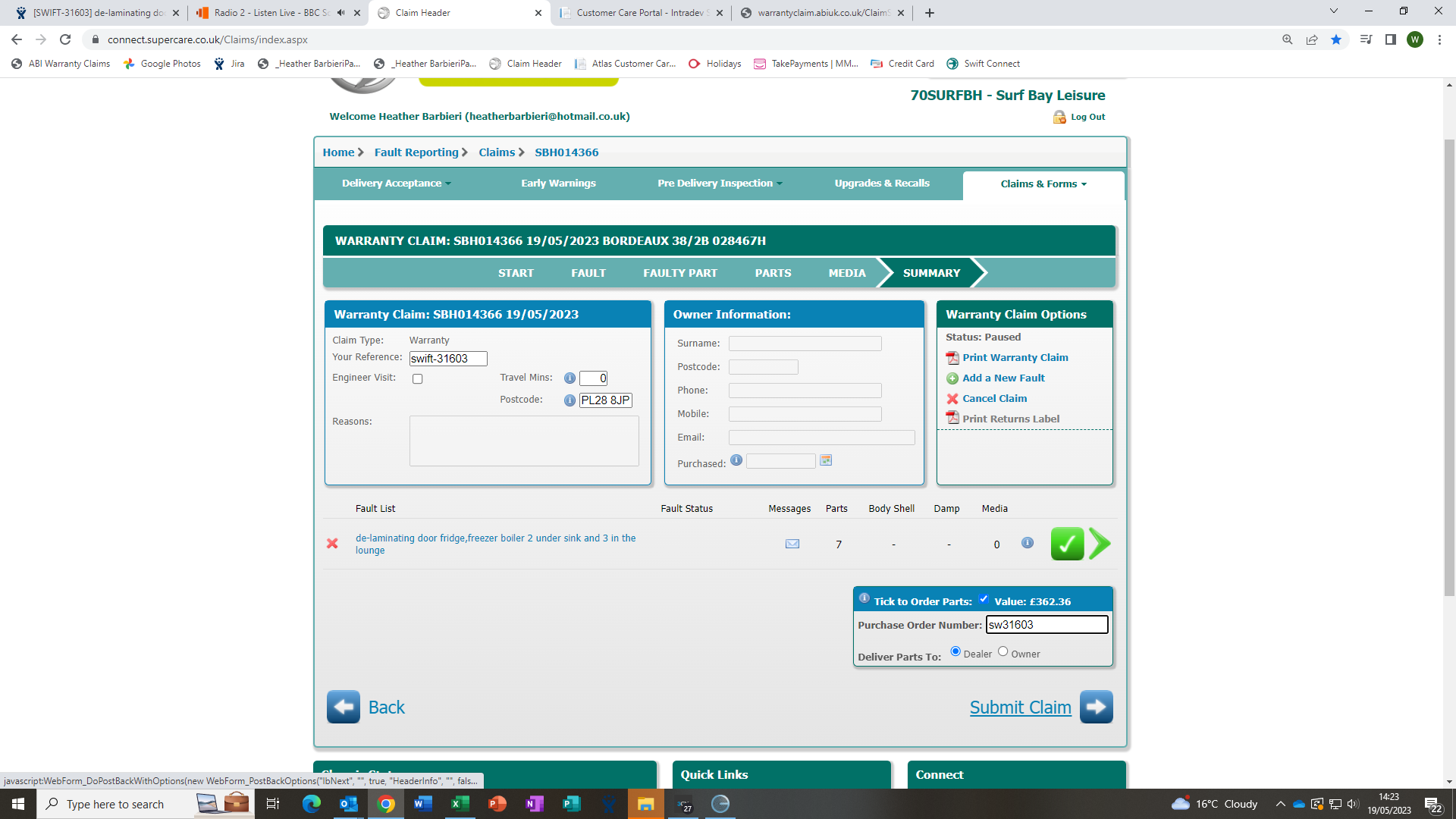 Status: Parts on reorder
