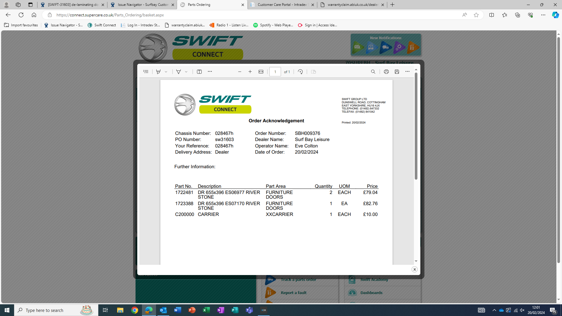 Parts on reorder