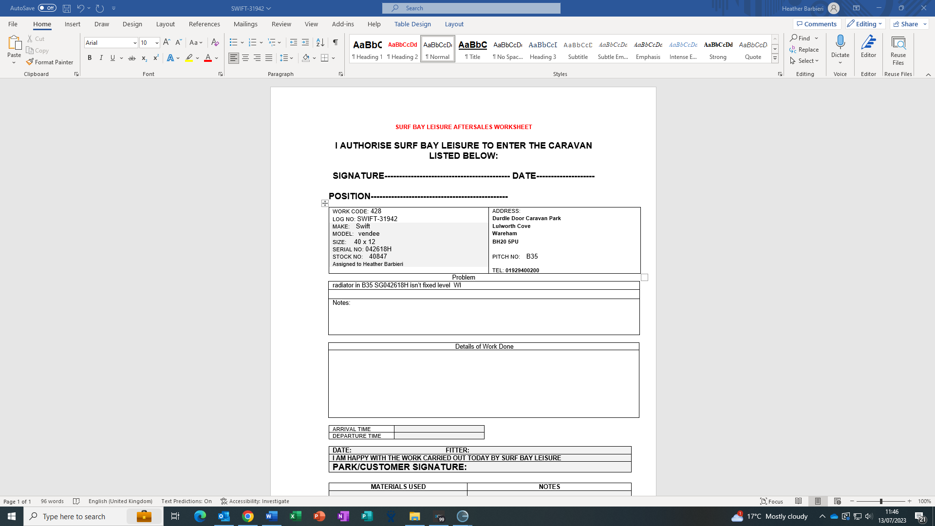 Heather Barbieri (Inactive) added a comment - I have raised a worksheet still waiting for Swift to authorise