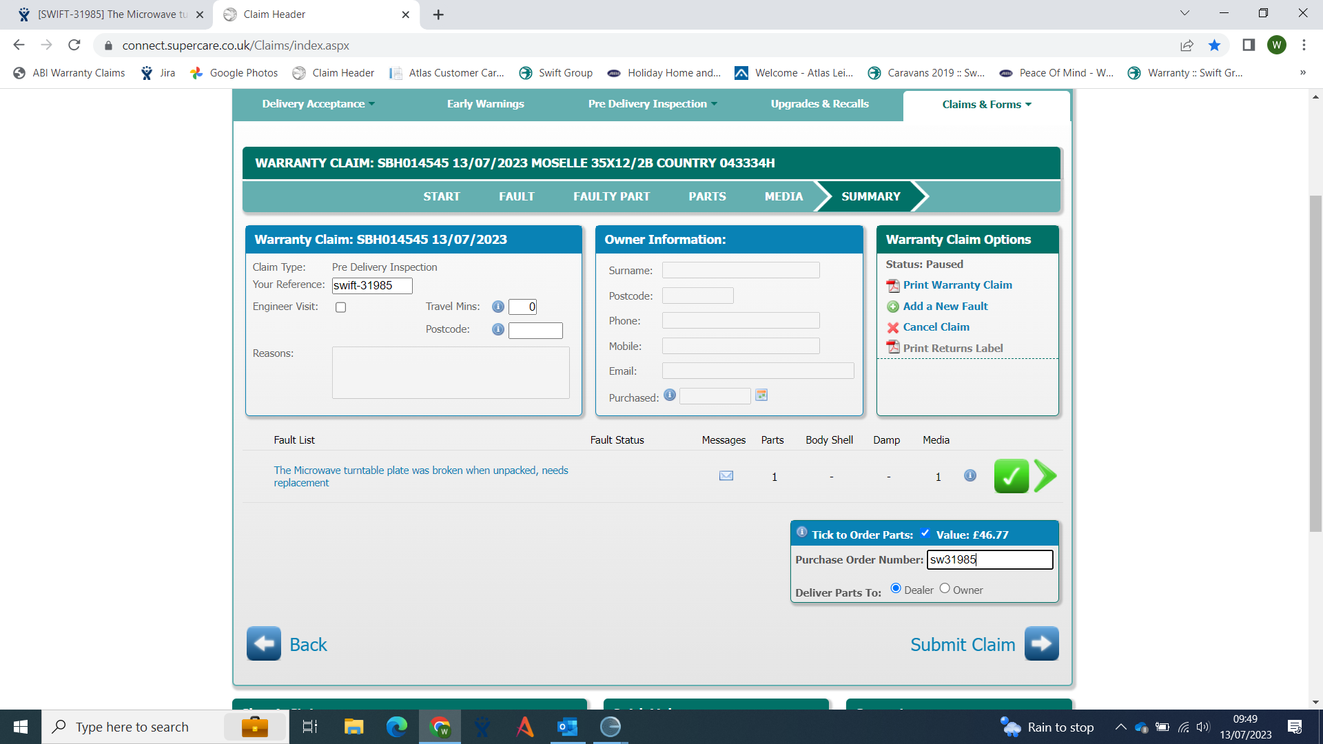 Emily McGuinness (Inactive) added a comment - Authorised by Swift, parts on order