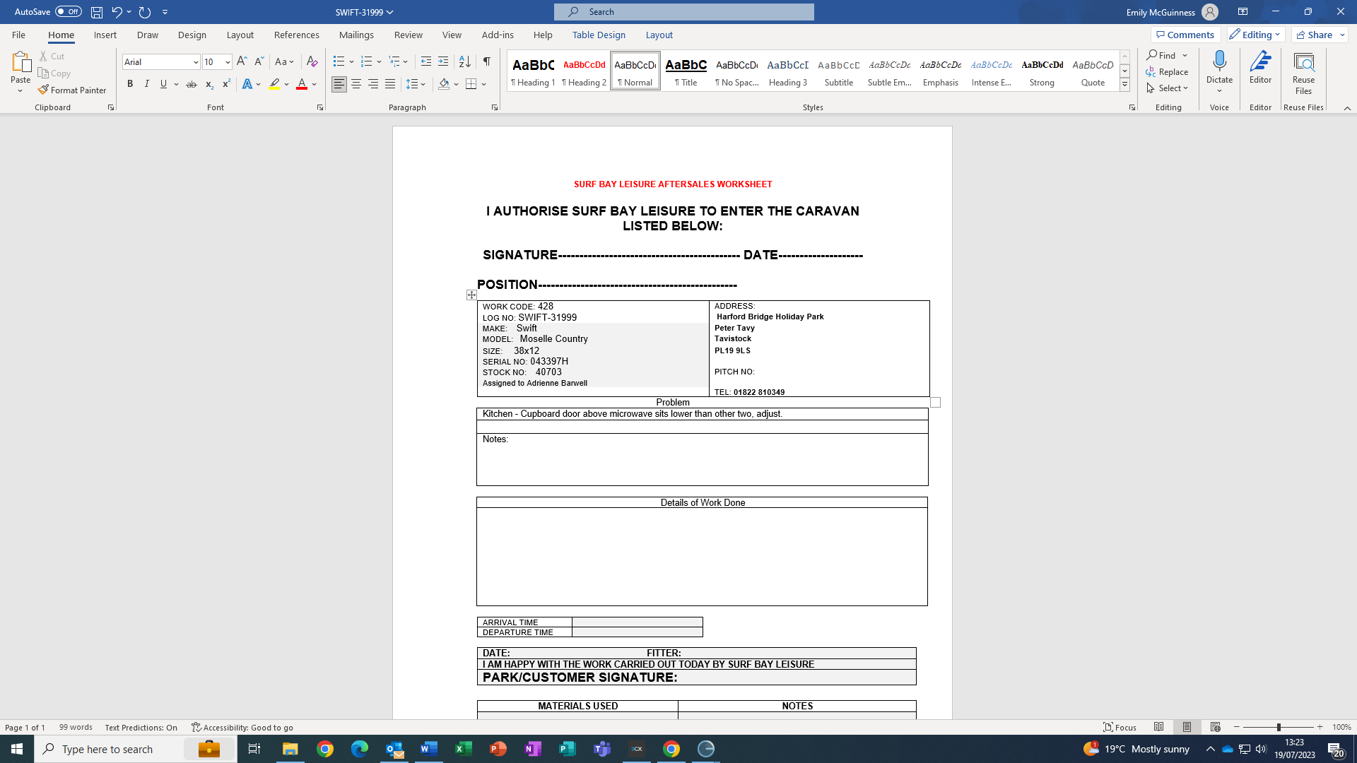 Emily McGuinness (Inactive) added a comment - Authorised by Swift, worksheet issued
