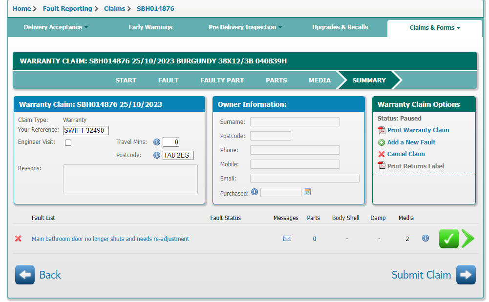 Authorised by Swift, worksheet issued and placed in folder.