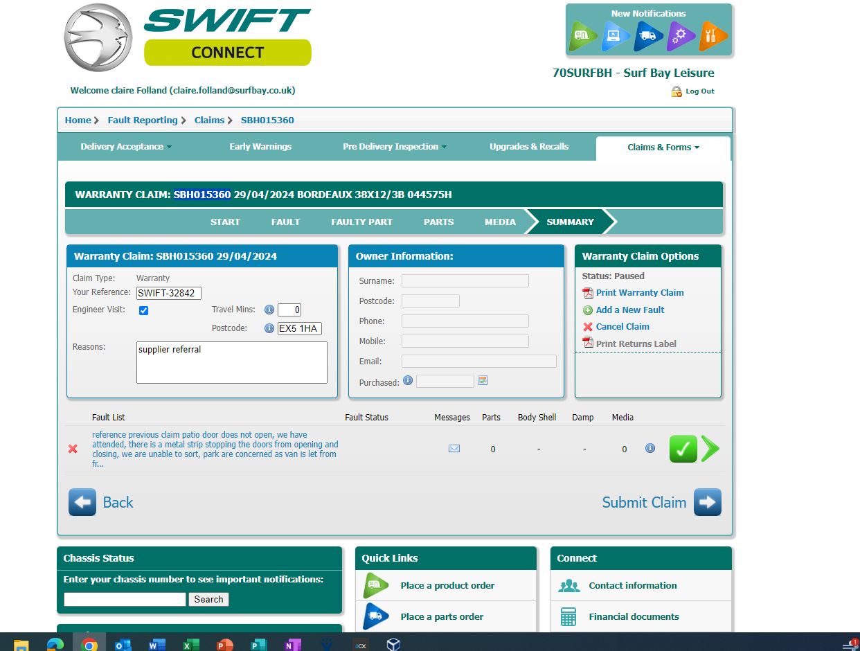 Claire Folland added a comment - Duncan attended 24-4-24, there is a piece of metal stopping the doors from opening, he is unable to remove, has advised this needs to be referred to the supplier, Lisa is chasing as the van is let from Friday, they are fully booked so have no where else to move these guests
