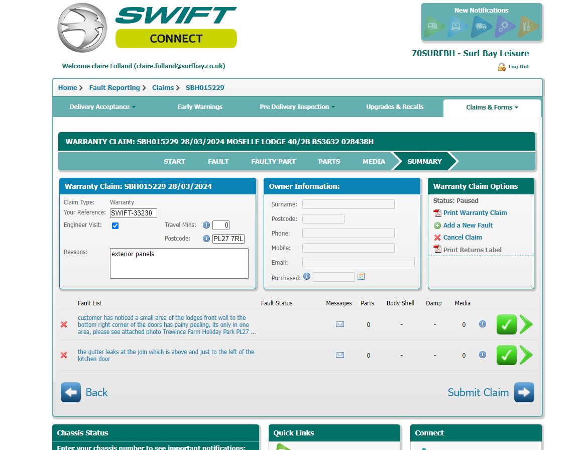 Claire Folland added a comment - swift attended 14-4-24, panel needs to be replaced, they have ordered parts, updated customer