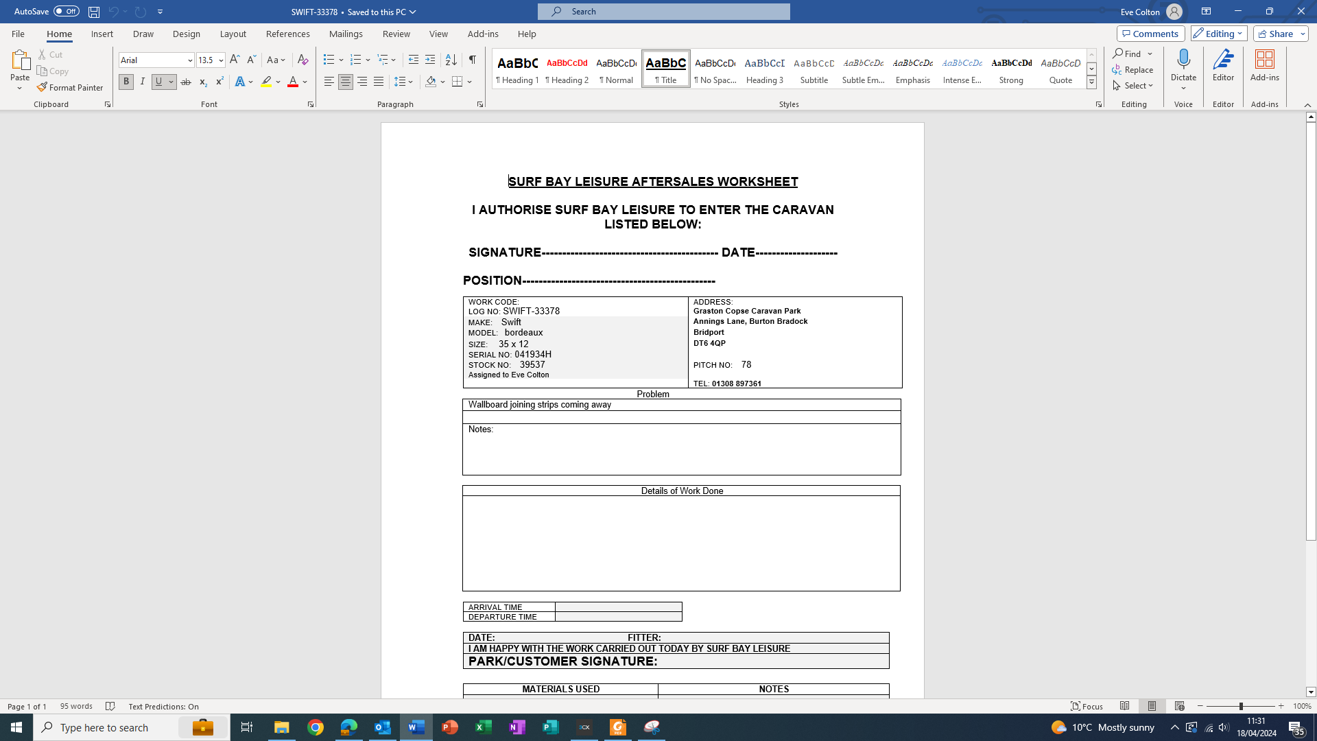 Eve Colton (Inactive) added a comment - Auth, worksheet issued