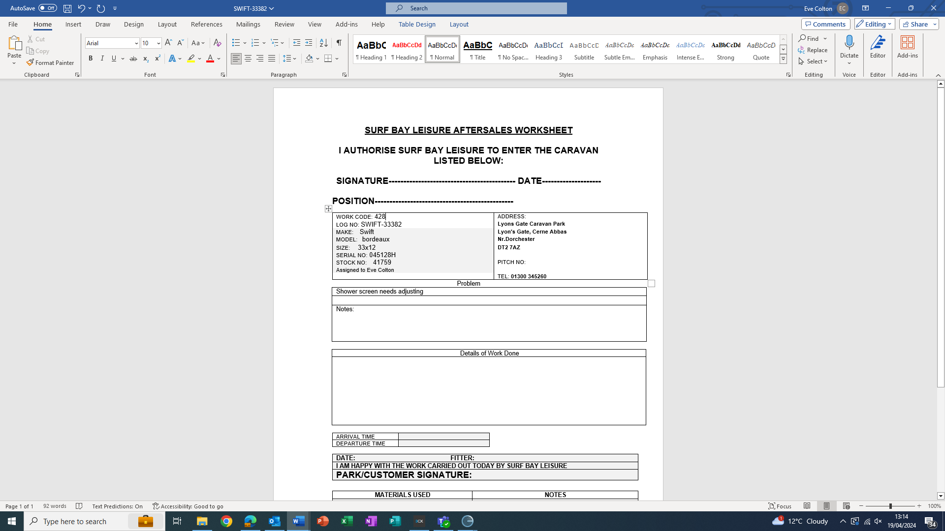Eve Colton (Inactive) added a comment - Auth Worksheet issued