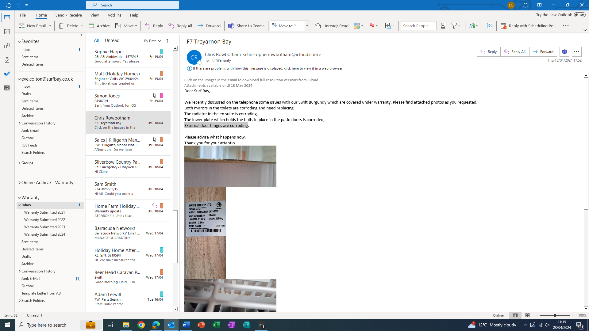 awaitng photos of hinges for parts enquiry