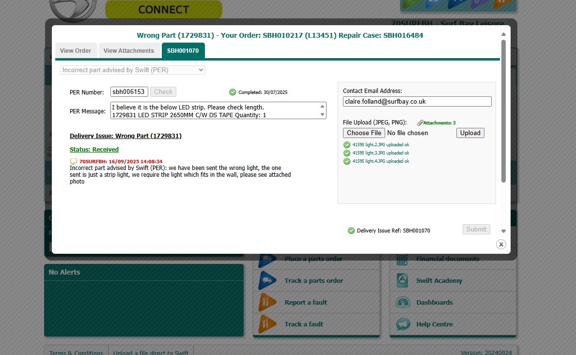 | Status | Parts on reorder [ 10009 ] | Parts Recieved [ 10003 ] |