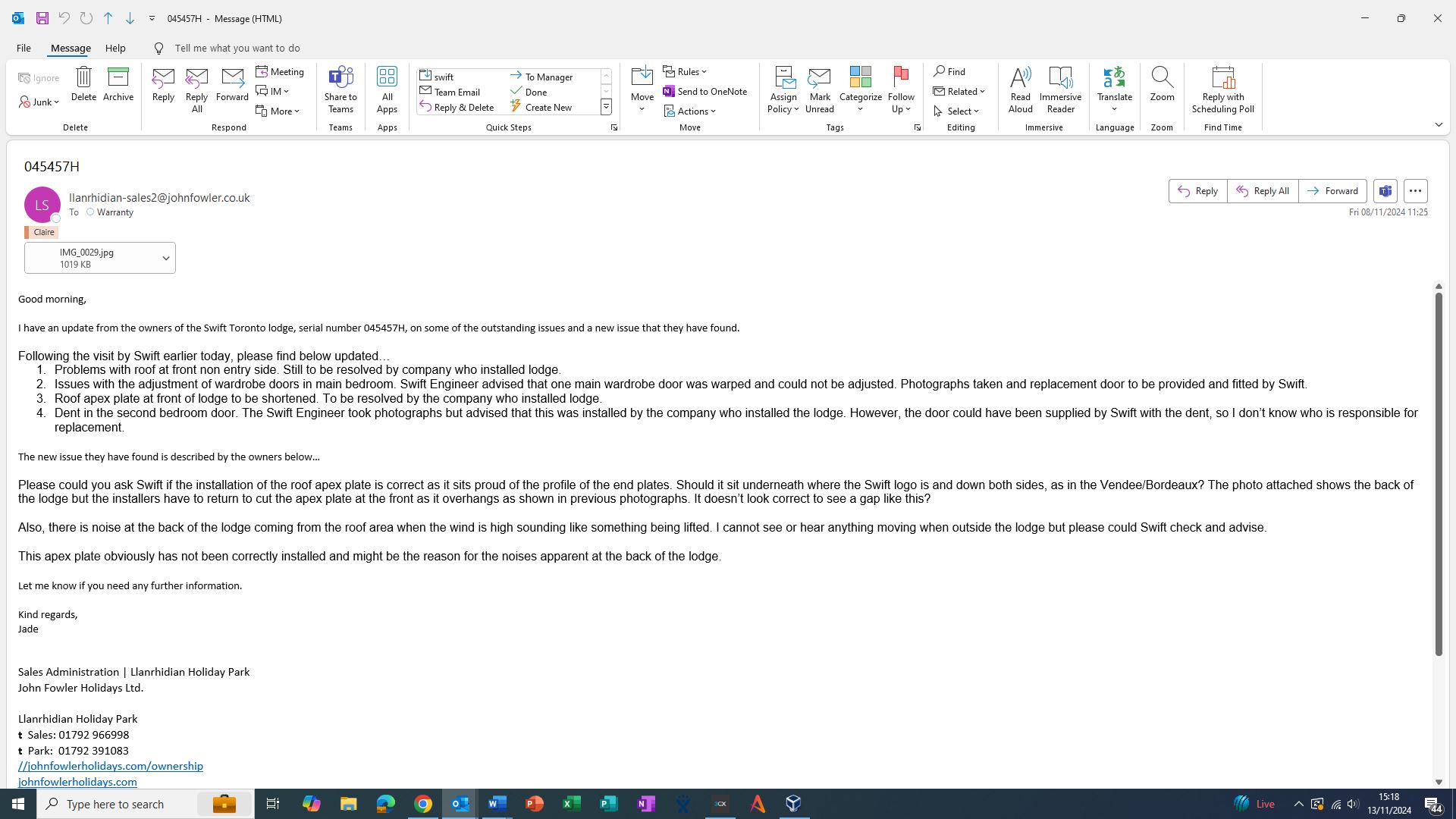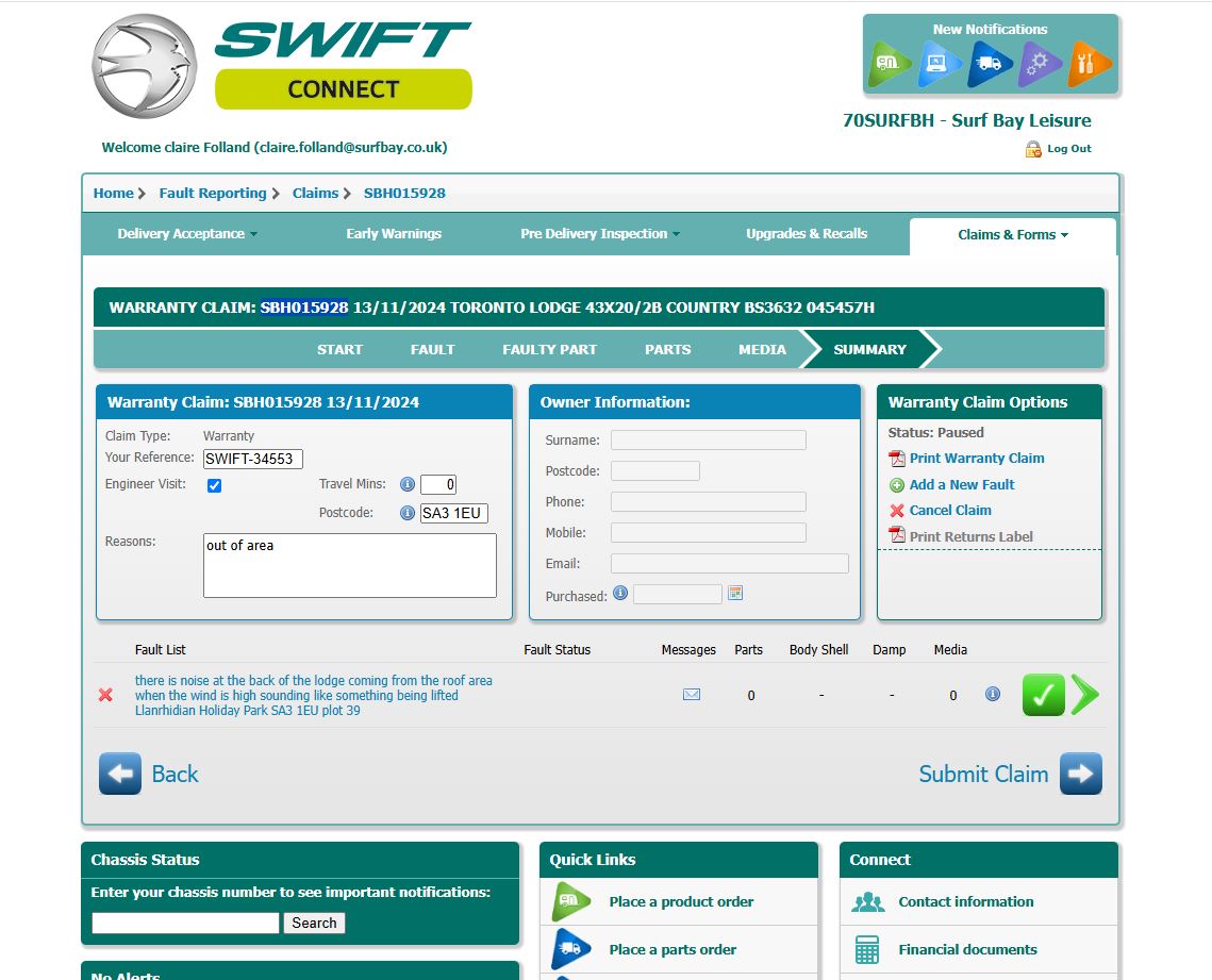 Claire Folland added a comment - received email from park, submitted into swift