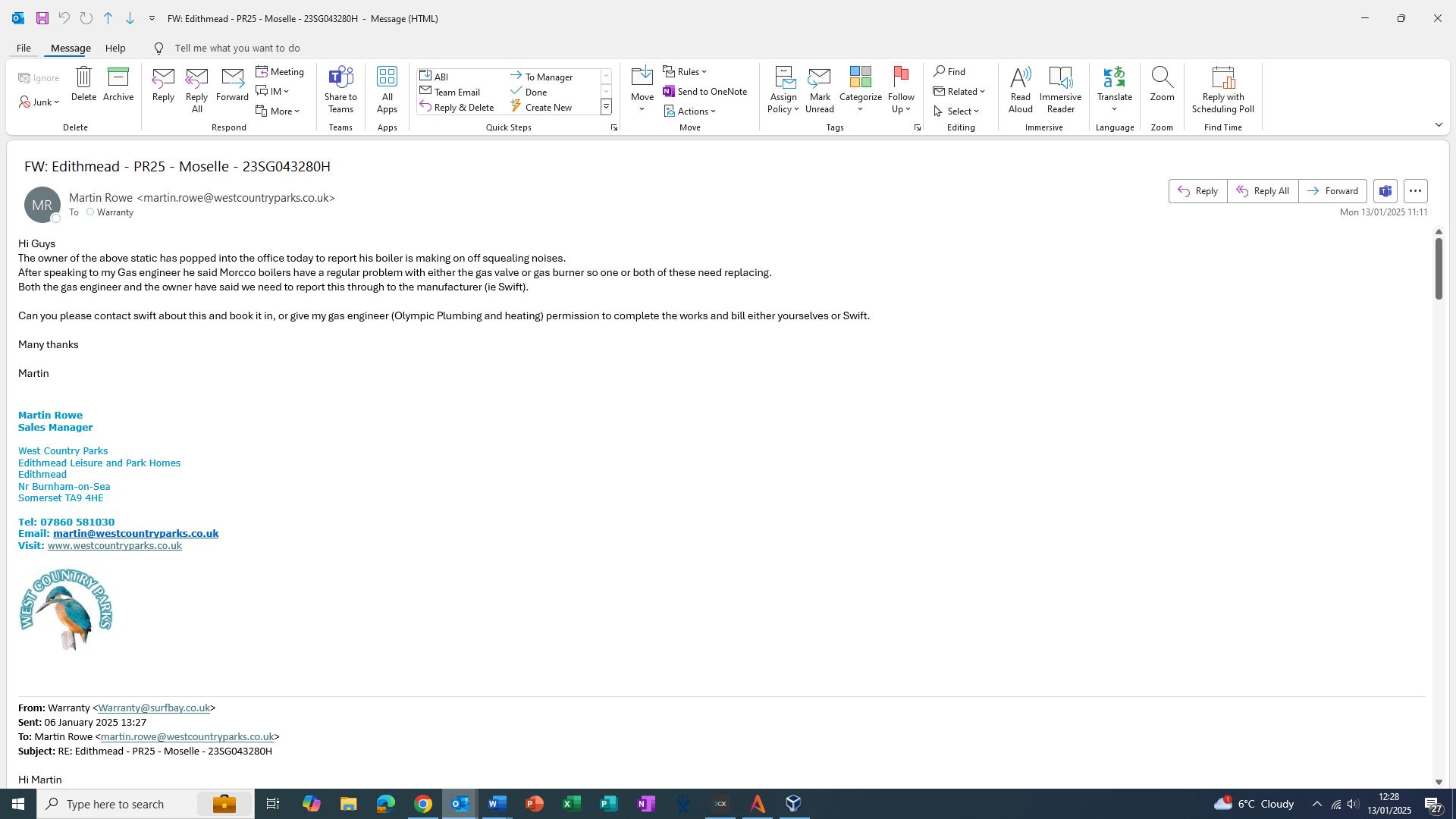 Can you please contact swift about this and book it in, or give my gas engineer (Olympic Plumbing and heating) permission to complete the works and bill either yourselves or Swift.
