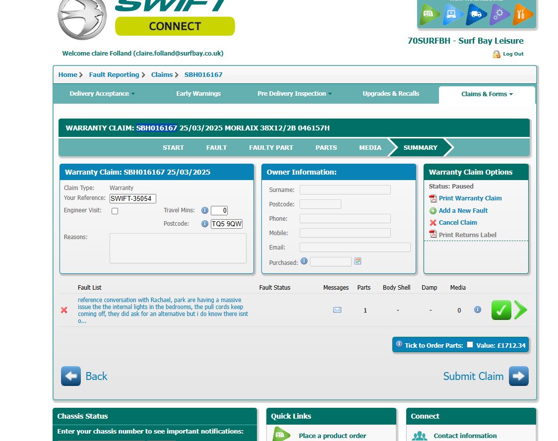 Claire Folland added a comment - received email from park, spoke to Rachael, she has spoken to the design team and they have confirmed there is not an alternative the park can have, never had an issue with these lights, Racheal has offered to order the park some as stock like she did for Woolacombe, submitted claim under one serial number, updated James at the park, he is happy with this