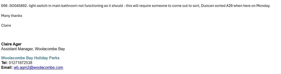 | Issue Type | Blinds (8 Weeks) [ 28 ] | Electrical Faults (2 Weeks) [ 8 ] |