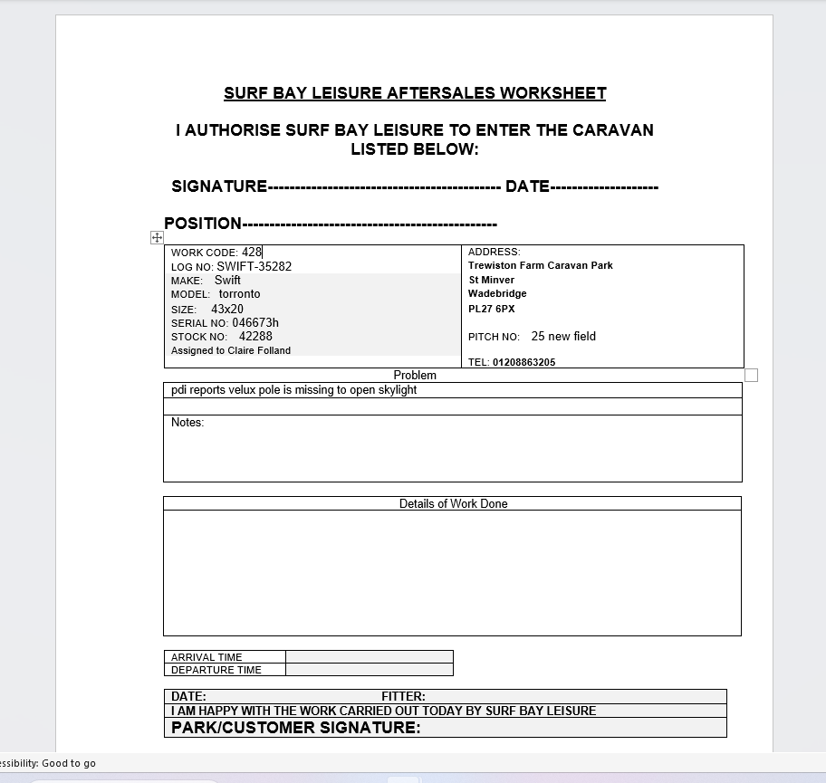 | Summary | CLONE - pdi reports no sofa bed as per spec | pdi reports velux pole is missing to open skylight |