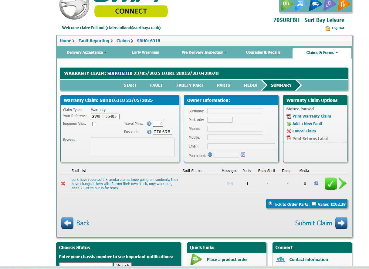 | Status | Parts Recieved [ 10003 ] | Resolved [ 5 ] |