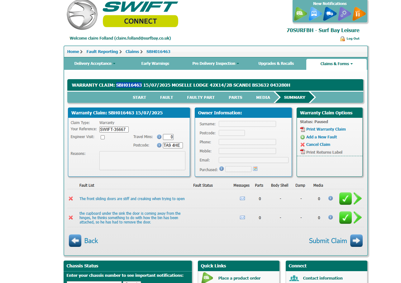 | Summary | CLONE - The front sliding doors are stiff and creaking when trying to open | the cupboard under the sink the door is coming away from the hinges |