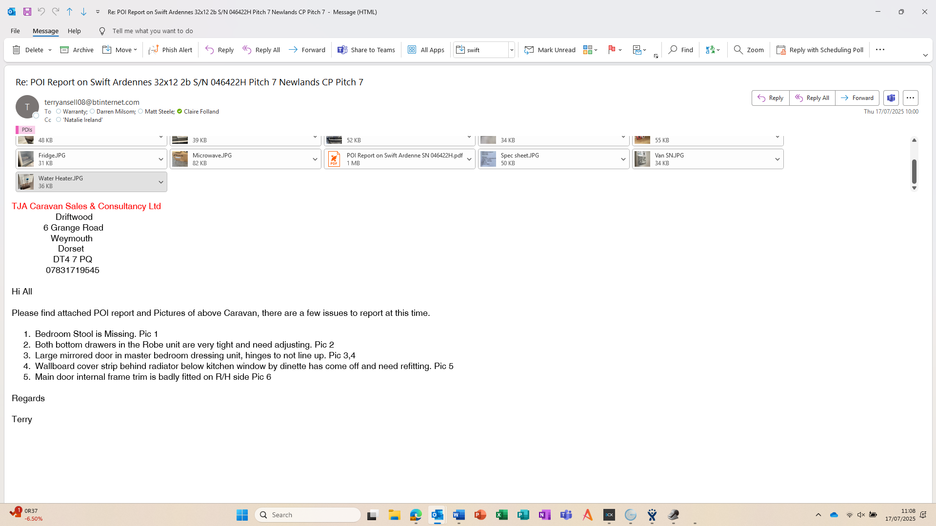 Charleen Sibley added a comment - REFITTED - DUNCAN 25.07.25